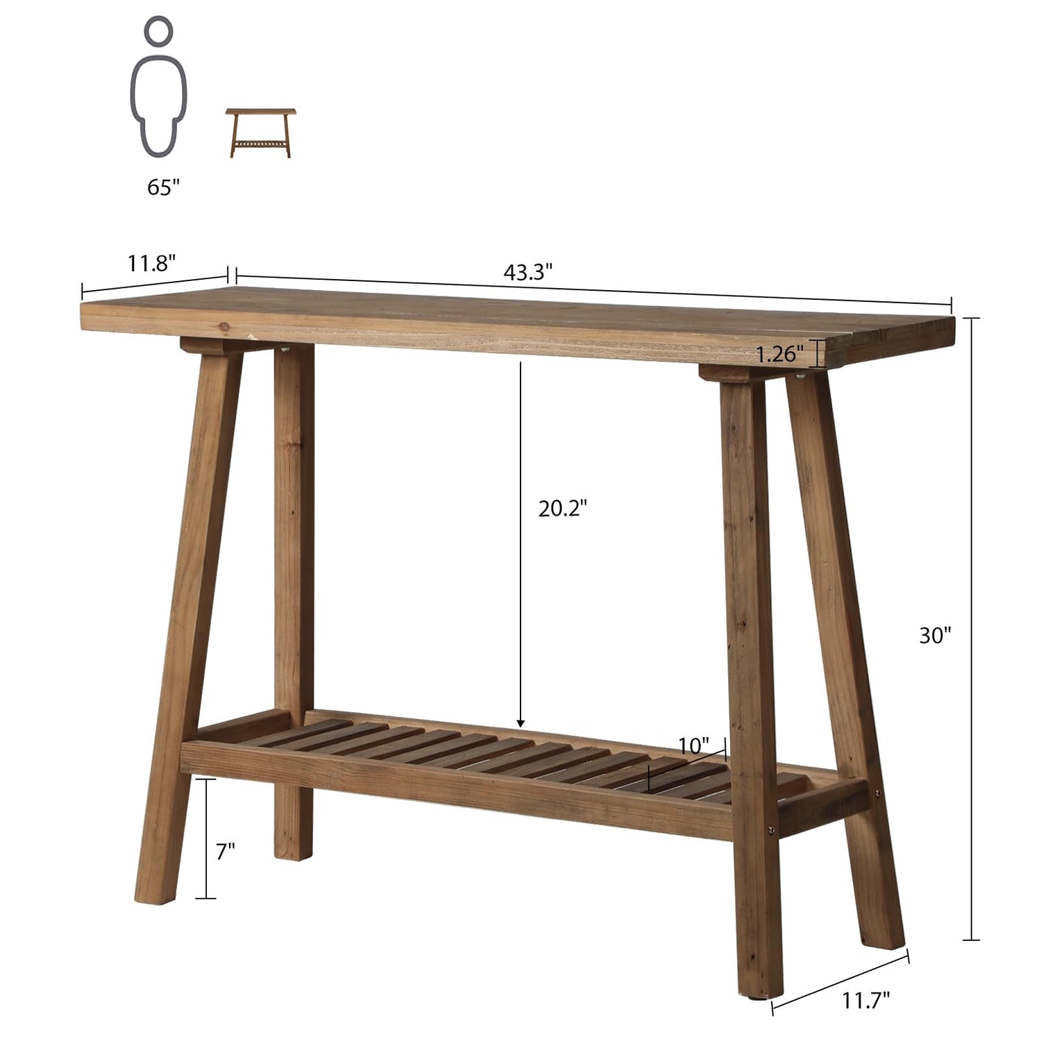 HOKYHOKY Reclaimed Solid Wood Console Table, 43.3" Farmhouse Entryway Table, Narrow Couch Tables Behind Sofa, 2 Tiers Accent Tables for Hallway, Entrance, Foyer, Living Room