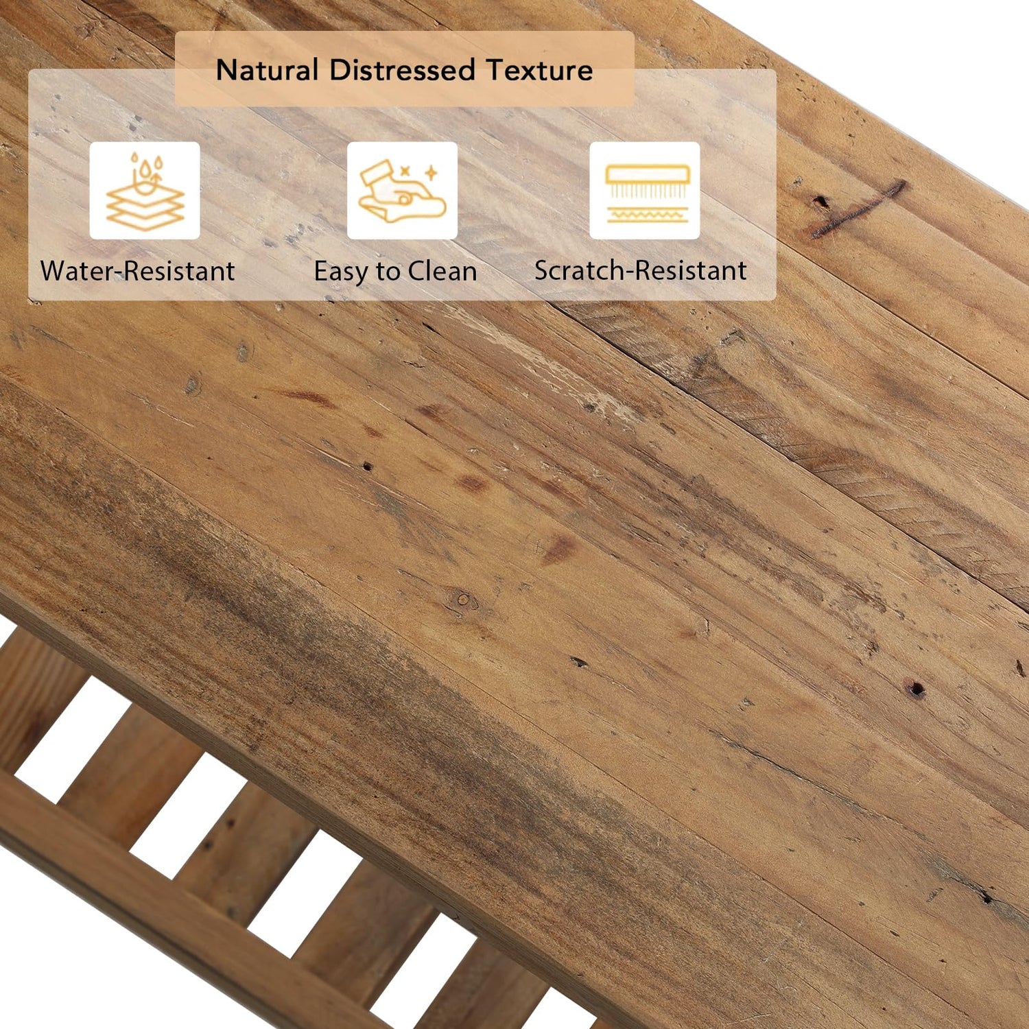 - 🔔Reclaimed Wood Rustic Design-Crafted from reclaimed wood, each piece is unique, showcasing the character of time through natural features like cracks, scratches and knots. These distinctive details are not flaws but to add charm and a sense of history, making it an ideal choice for those who appreciate a warm, lived-in aesthetic. Perfect for adding a touch of rustic elegance to your home. Inspired by classic minimalist lines design, this entryway furniture features a rustic yet timeless appeal.