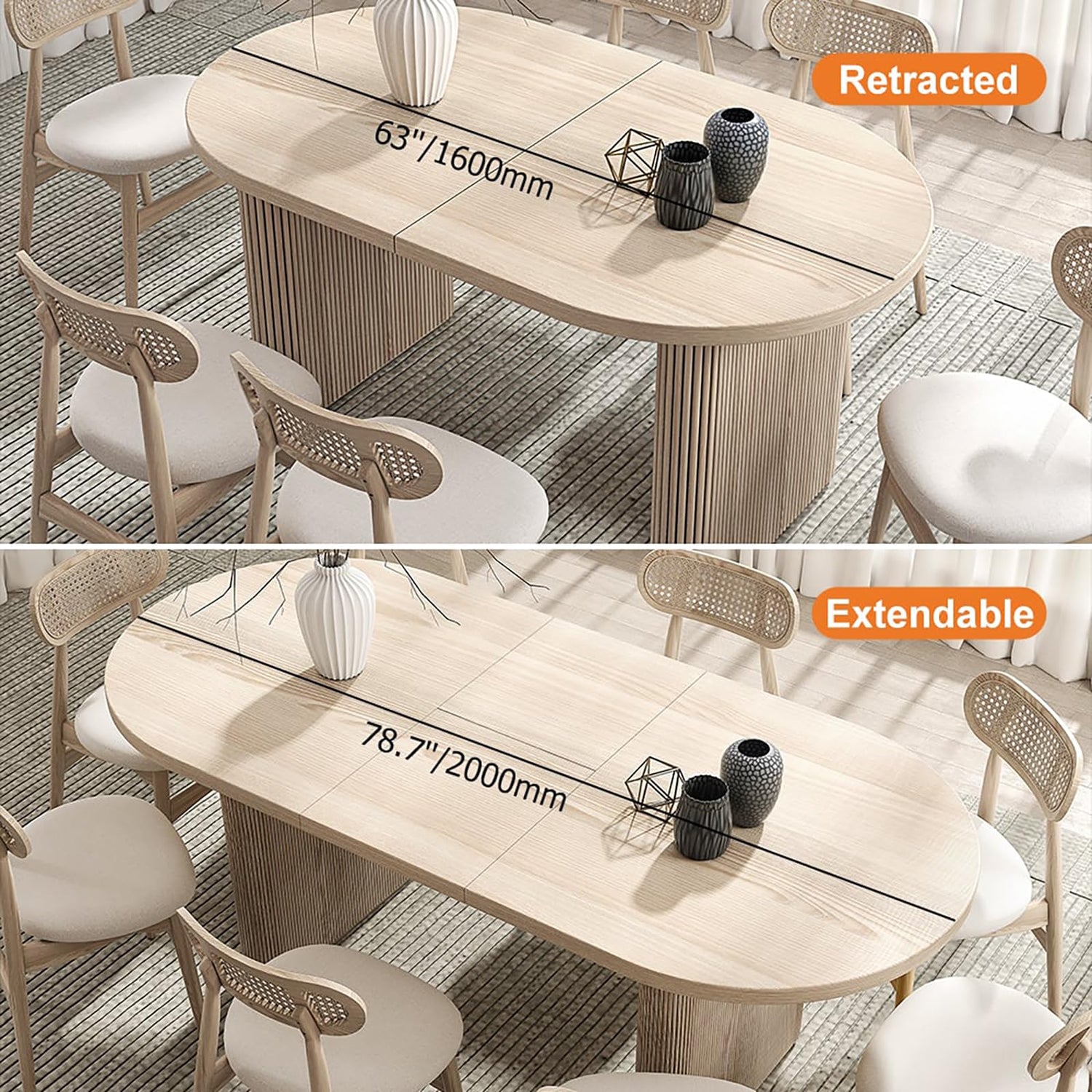 homary 63""-79"" Extendable Dining Table for 4 6 Person,Farmhouse Kitchen Table Oval Dining Table, Whitewash