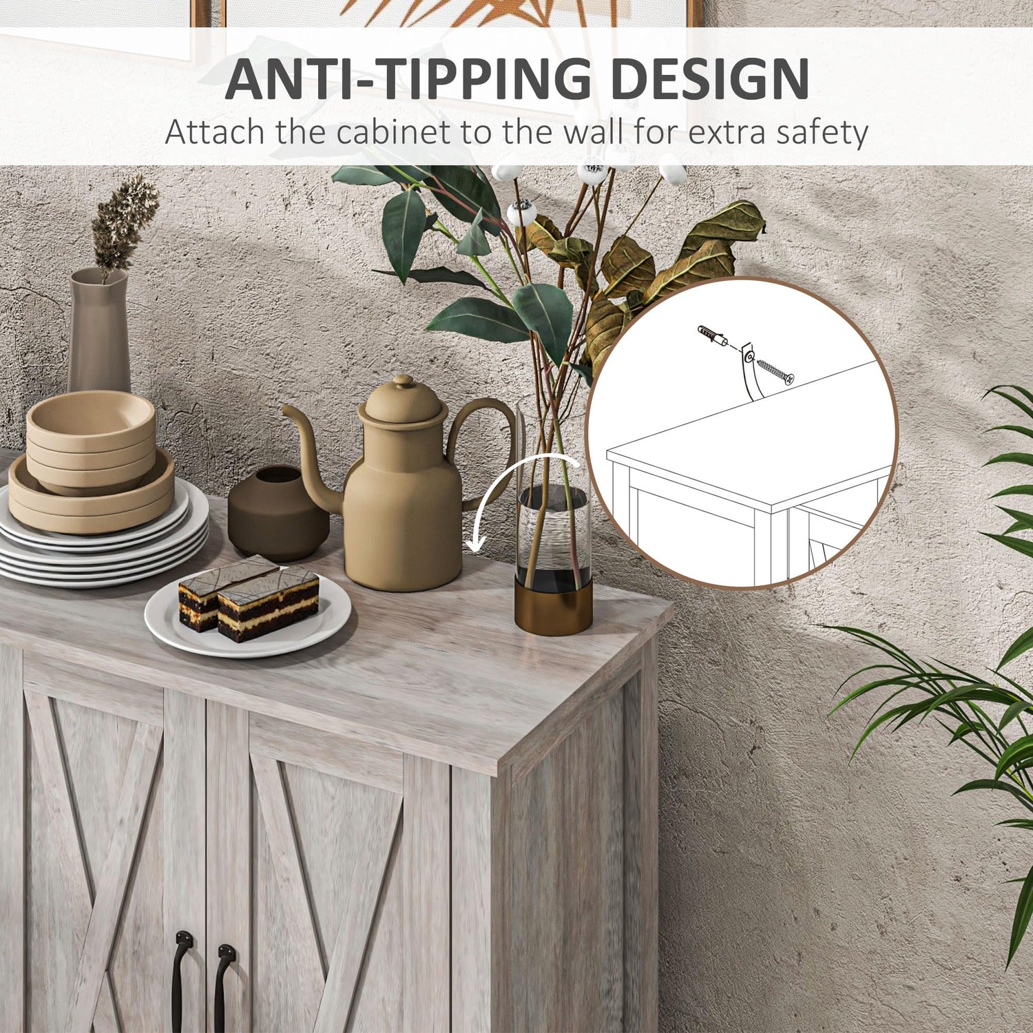 HOMCOM Buffet Cabinet, 47" Sideboard with 4 Barn Doors and 2 Adjustable Shelves, Farmhouse Coffee Bar Cabinet, Gray Wood Grain