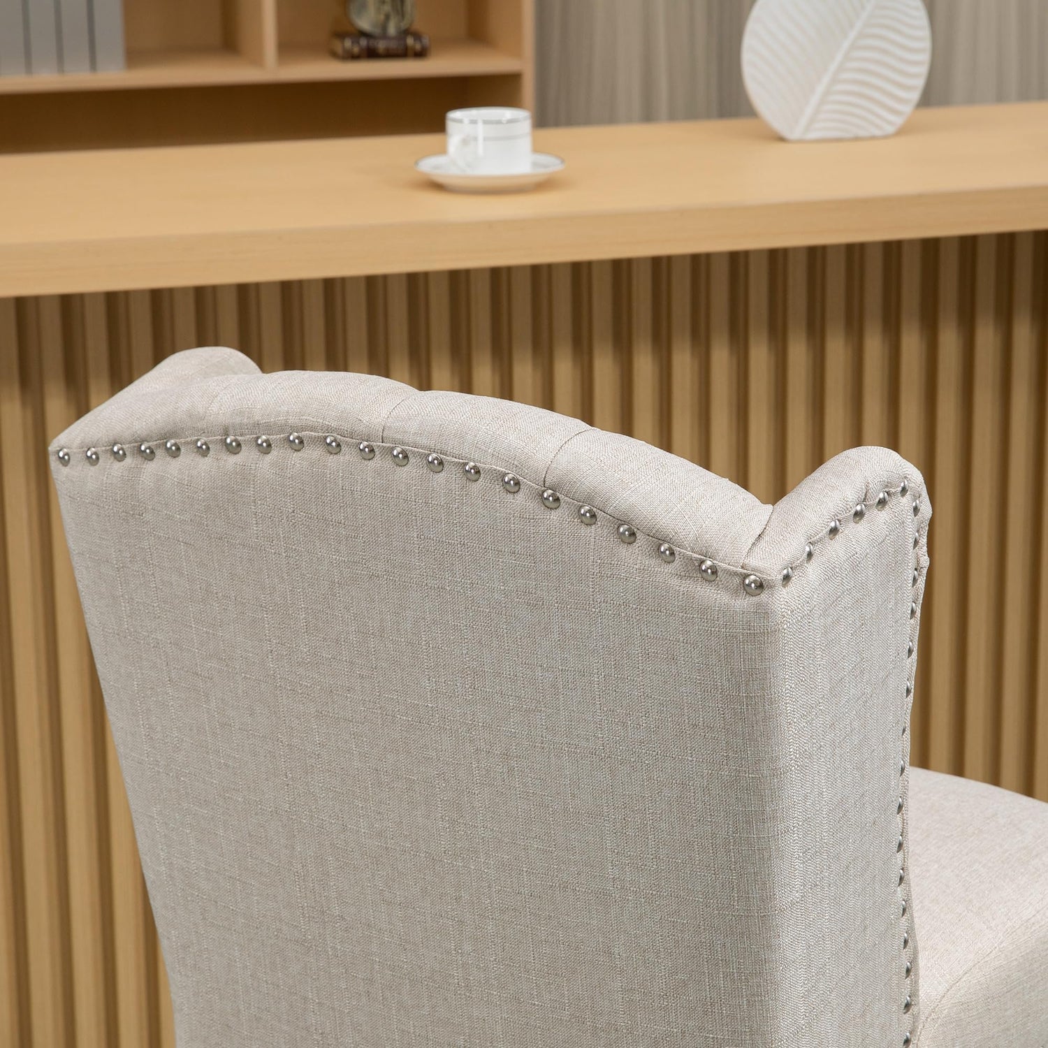 - High Comfort: The breathable linen-feel fabric upholstered kitchen stools with spacious seat, 4.7" thick foam padding and wing back provide support and comfort when you lounge at the counter.