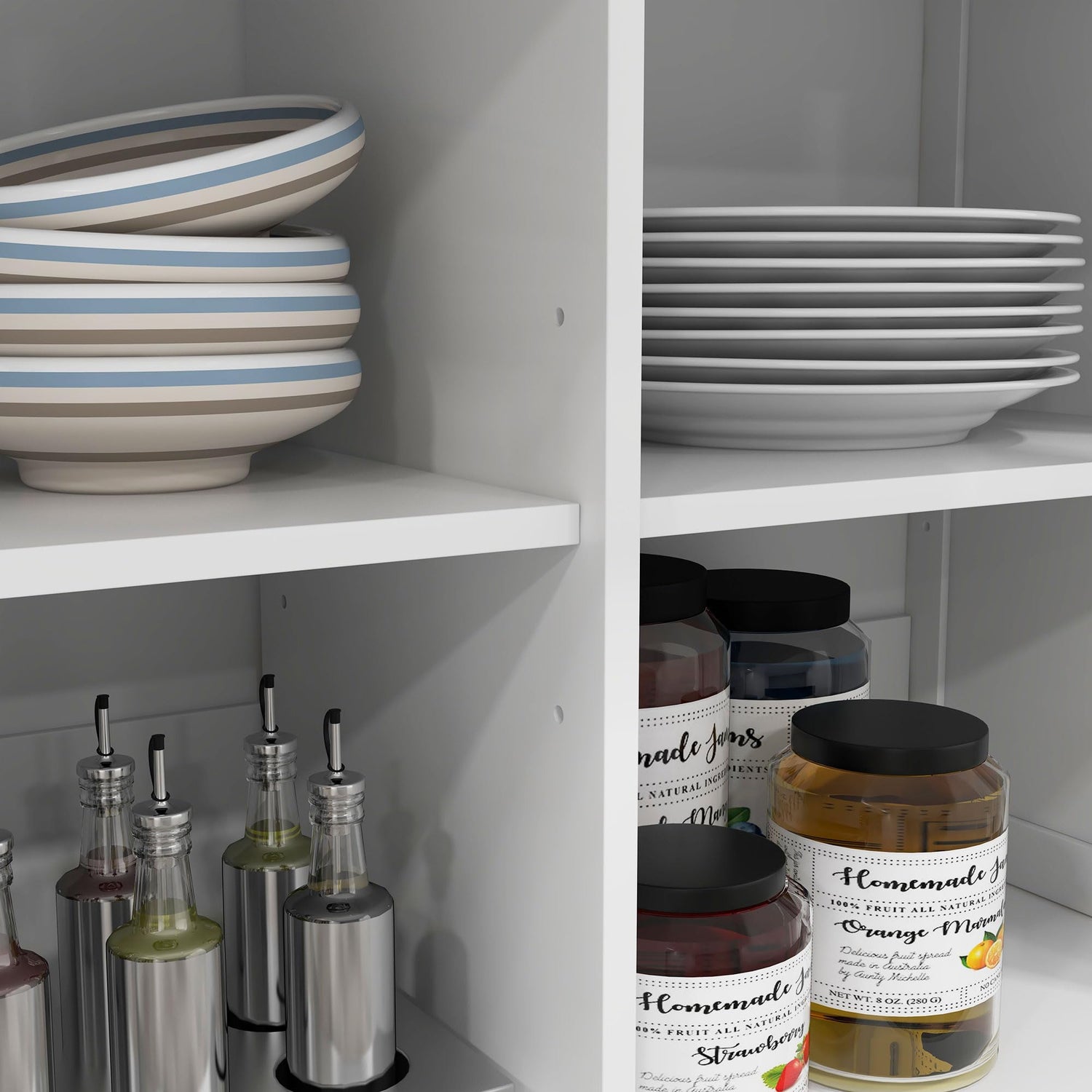 - Kitchen Handy: Keep kitchen items handy with our spacious rolling kitchen island. You can store appliances, snacks, and more on the wide countertop. The roomy drawers on metal slides and double-door cabinet provide hidden storage for culinary. The adjustable shelves make for customizable storage space.