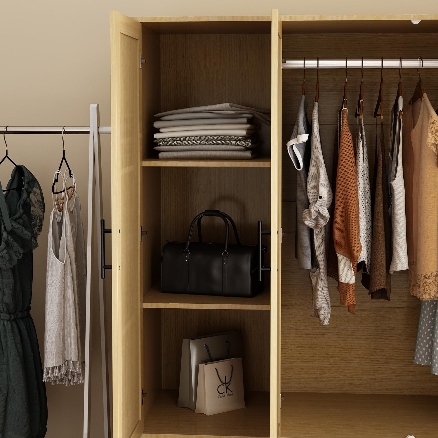 - Bedroom Wardrobe Cabinet - Homsee light brown wardrobe with storage features 6 Tic Tac Toe patterned doors, 2 hanging bars, 2 drawers and total 7 storage shelves to satisfy your most kinds of daily needs and store many clothes.