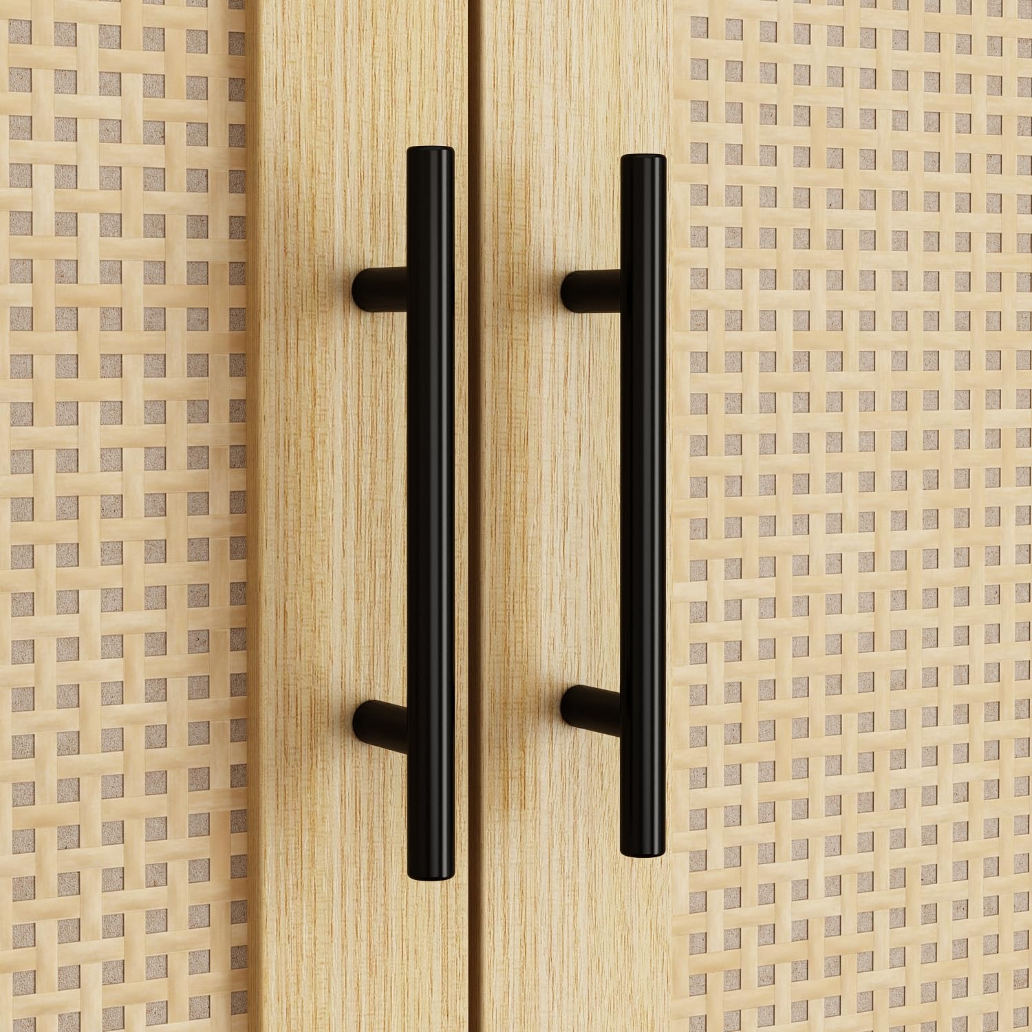 - Stylish Appearance - The light brown wardrobe with 6 rattan doors is veneered with natural wood grains on the panels, and the rattan doors will add boho and farmhouse atmosphere to your room.