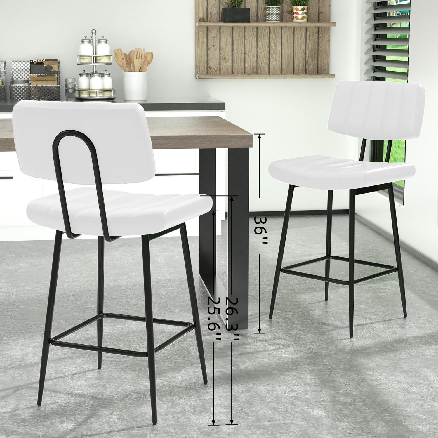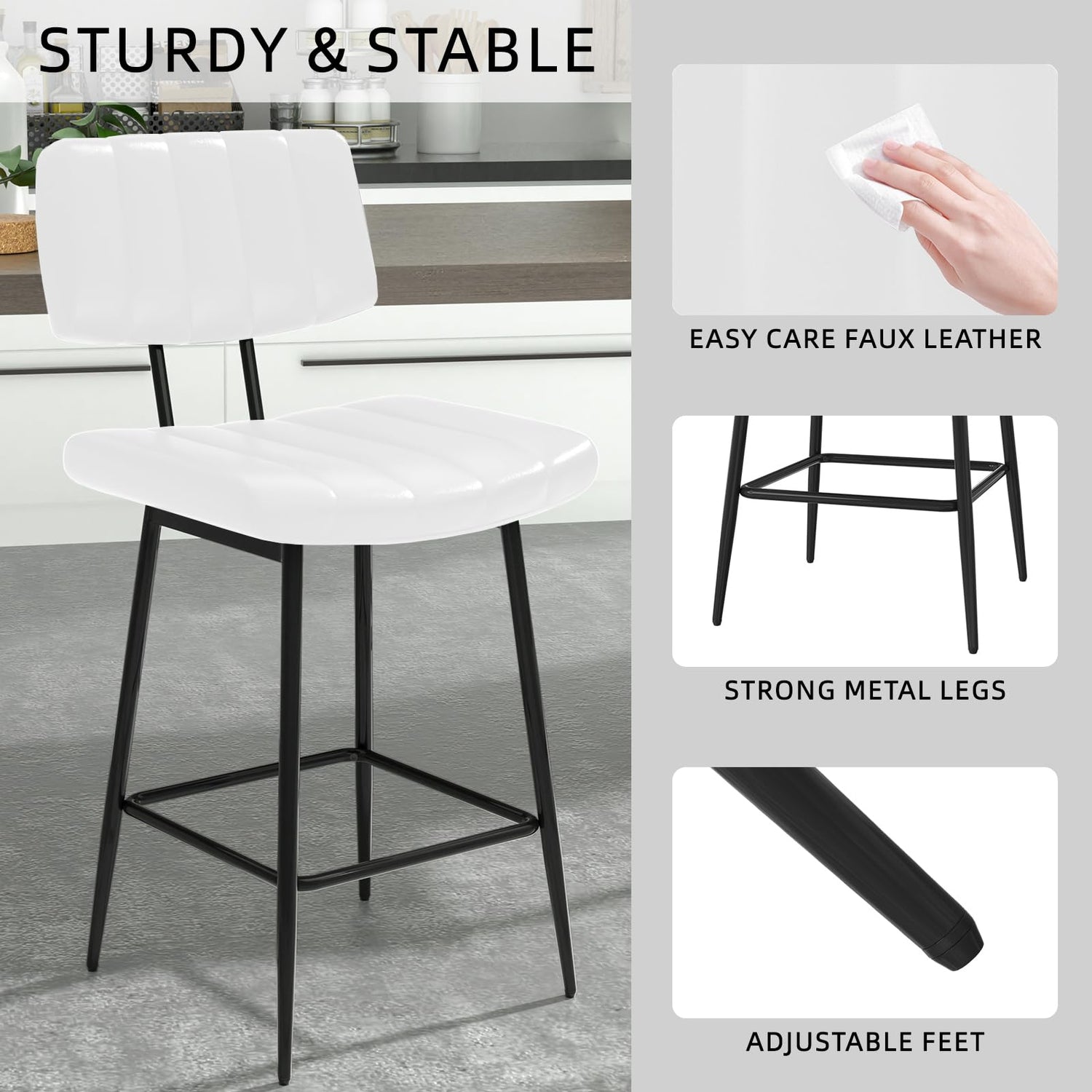 HONIFUR Bar Stools Set of 4, Barstools with Sturdy Legs, Leather Counter Height Bar Stool for Kitchen, Dining, 26 Inch Farmhouse Counter Stools, White