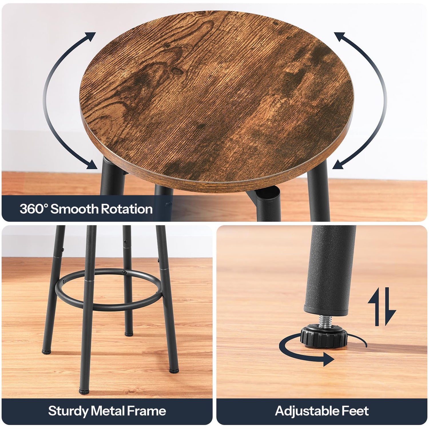 HOOBRO Bar Stools, Swivel Bar Stools Set of 2, 24.9" Round Bar Chairs, Backless Modern Breakfast Chairs, with Adjustable Feet, for Kitchen Islands, Bar, Cafe, Rustic Brown and Black BF24BY01