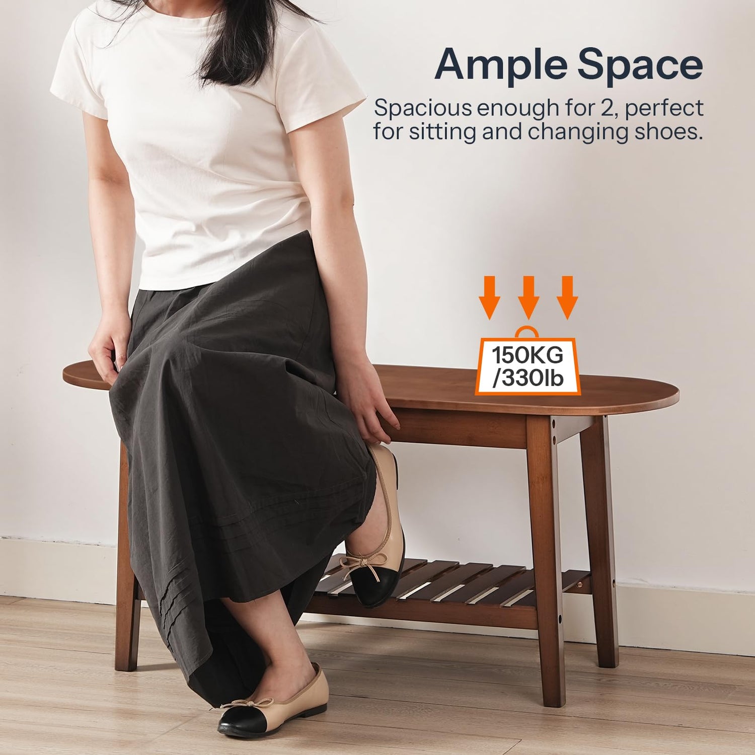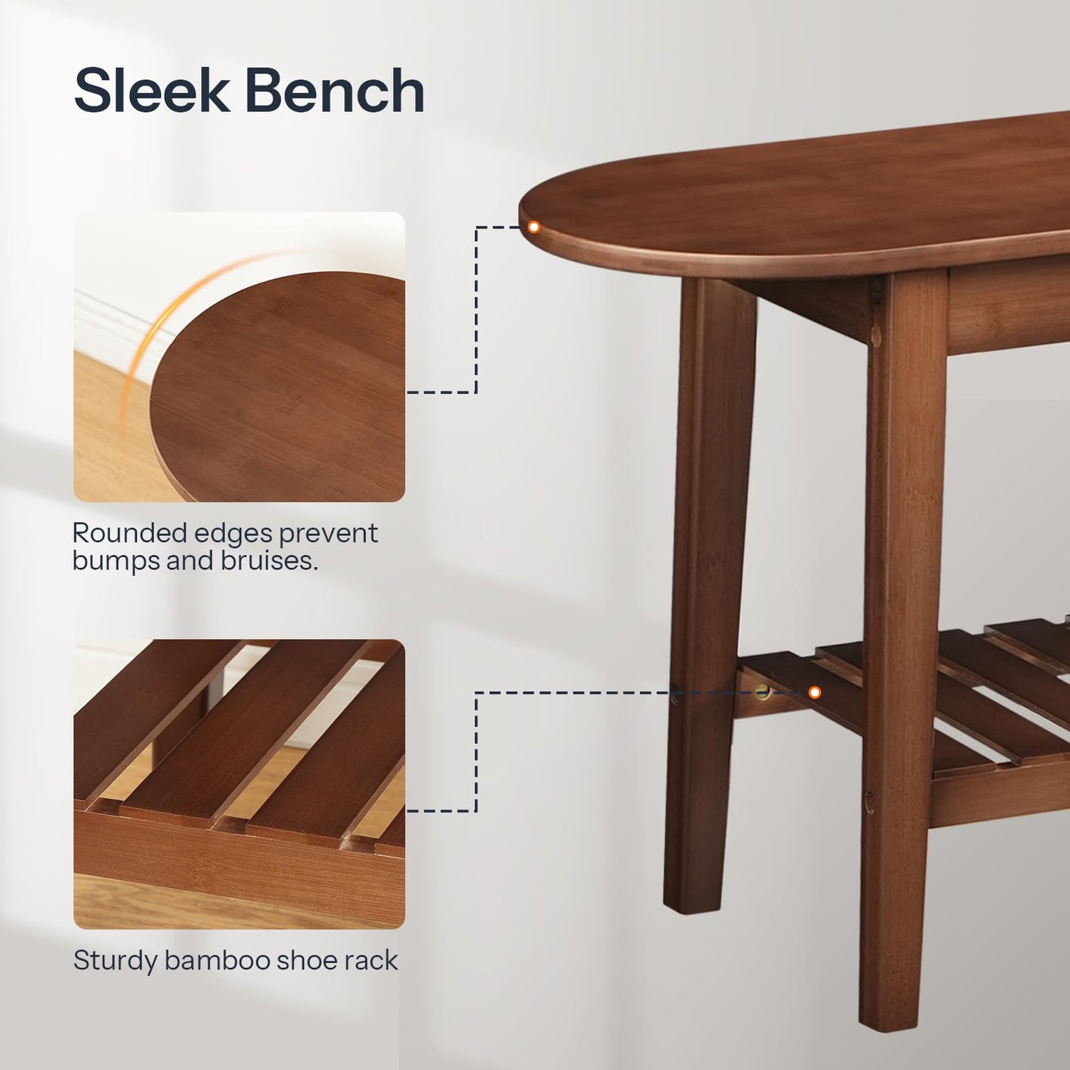 - Thoughtful Details: Our storage bench includes 4 non-slip pads on the bottom legs to prevent floor scratches and avoid noise during movement. Additionally, the second-tier slatted shelf design enhances ventilation while adding a touch of visual appeal