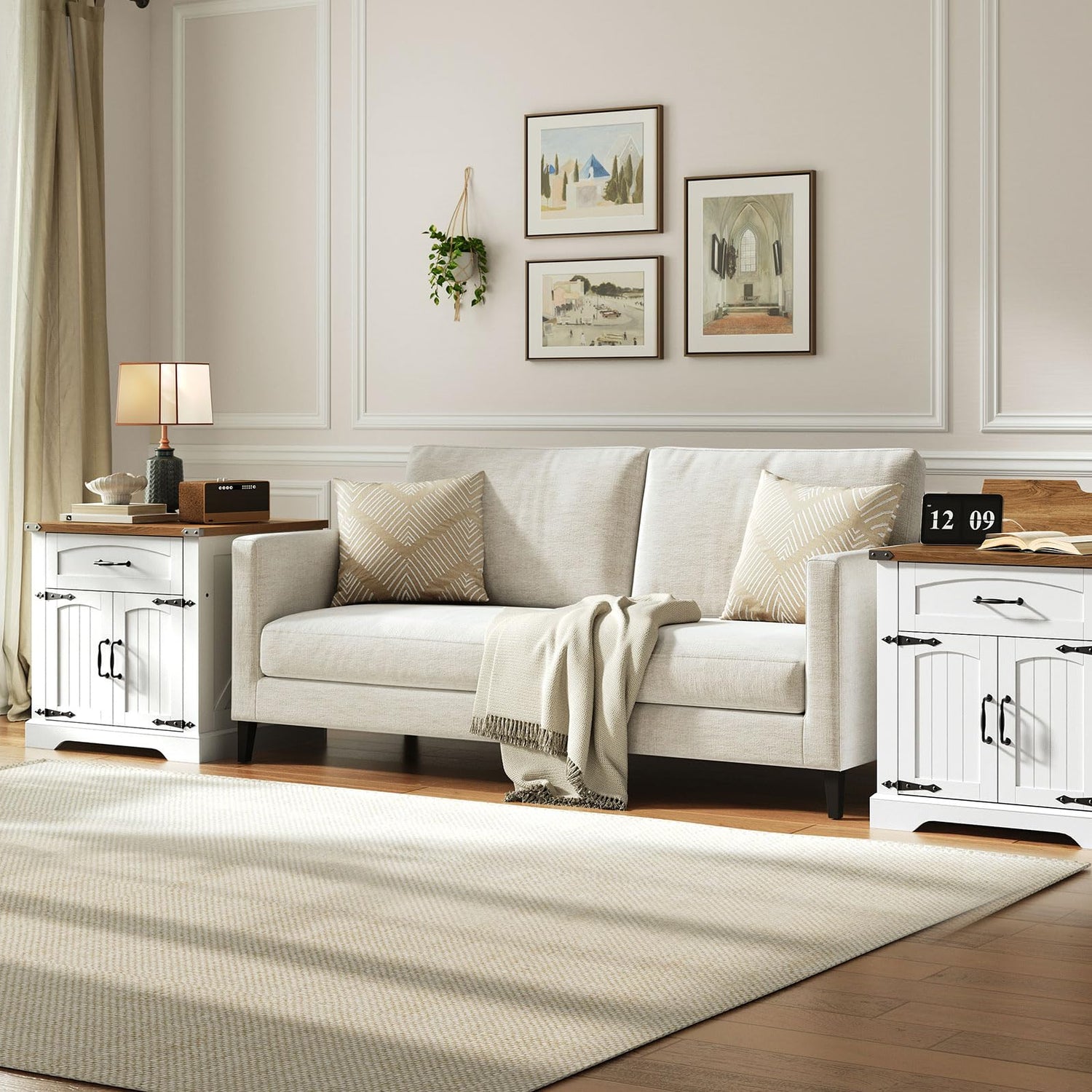 • Hidden Charging Station: The farmhouse end table features a flip-top compartment that hides a power strip and wires to keep the desktop tidy. The power strip includes 2 AC outlets, 1 USB port, and 1 Type-C port to meet all your charging needs efficiently and safely
