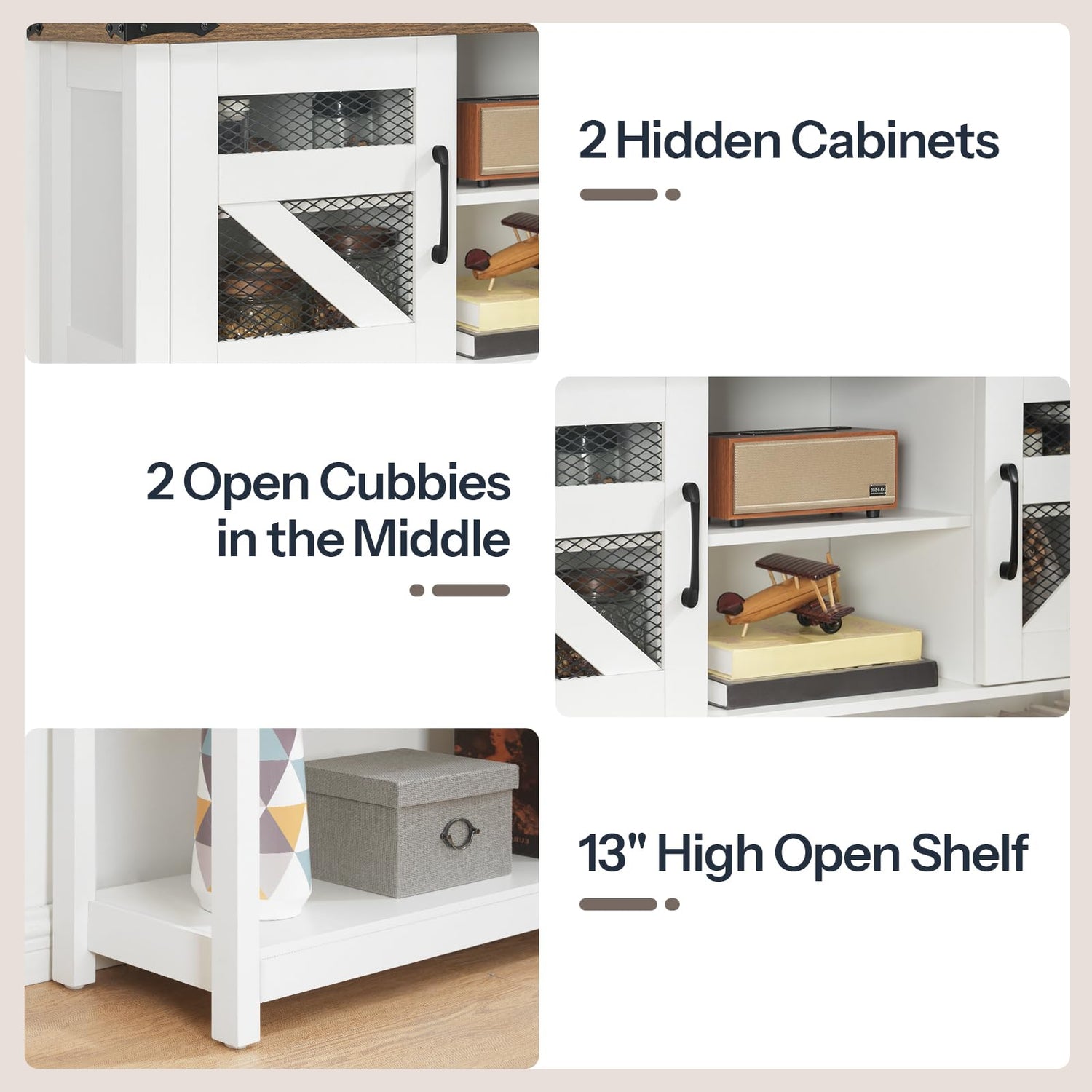 - Ample Storage: The farmhouse entryway table features 2 cabinets with adjustable shelves, 2 open compartments, and spacious top and bottom shelf. It easily stores planters, books, frames, baskets, and more, meeting diverse daily storage needs