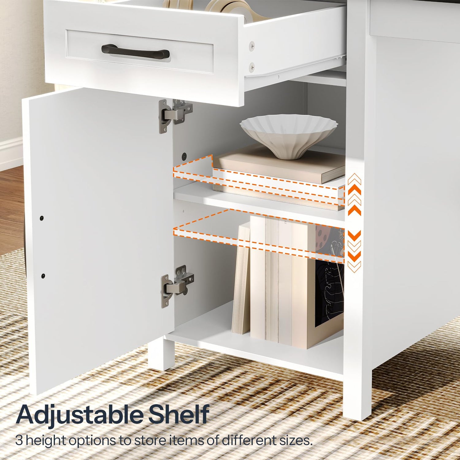 • Ample Storage Space: This executive computer desk has a spacious desktop, 3 drawers and 2 storage cabinets. The 63" * 21.7" desktop provides ample space for files, computers, other office supplies. The file drawers can accommodate letter/A4/other size files, and the cabinet shelves are height-adjustable for organizing supplies at different heights, keeping your workspace tidy.