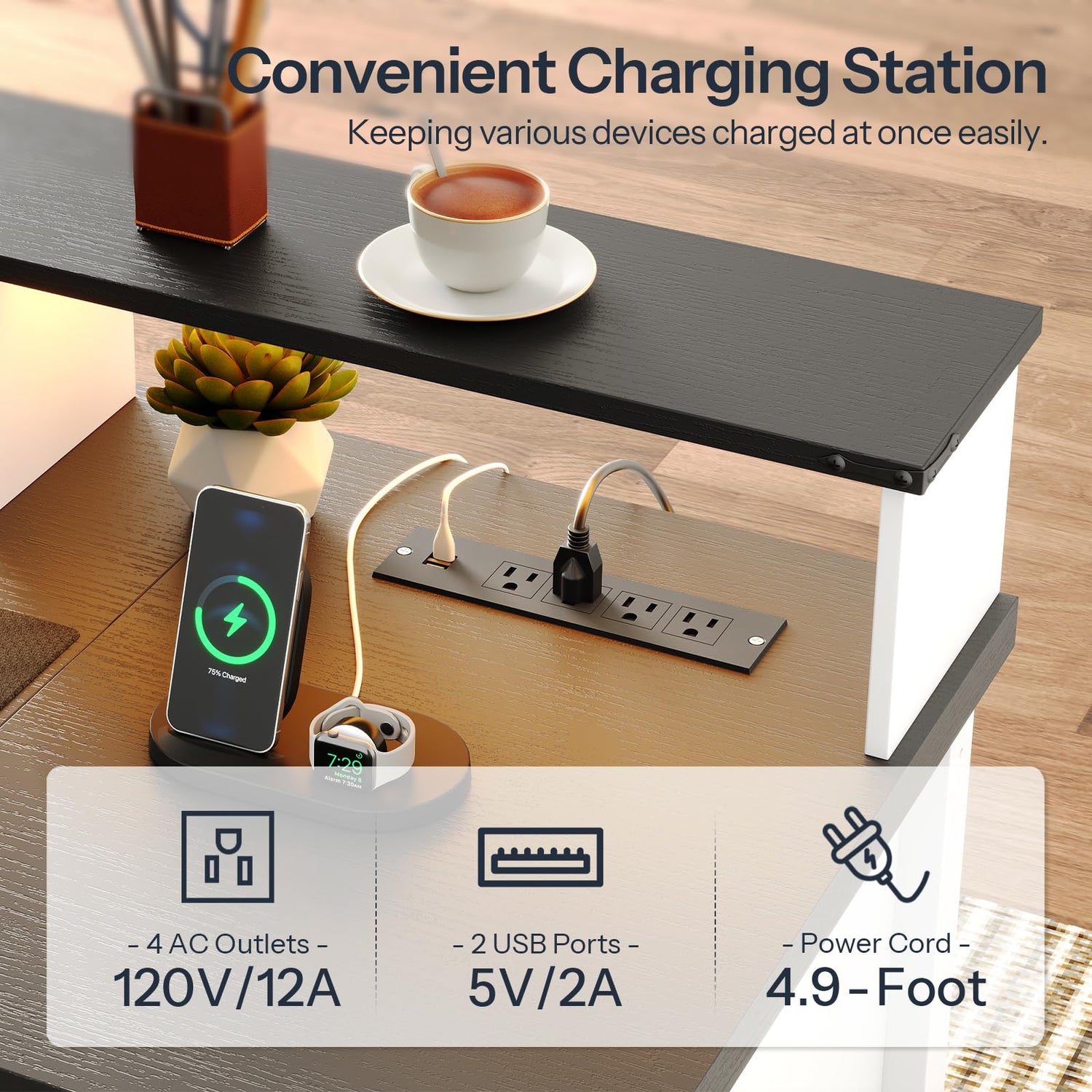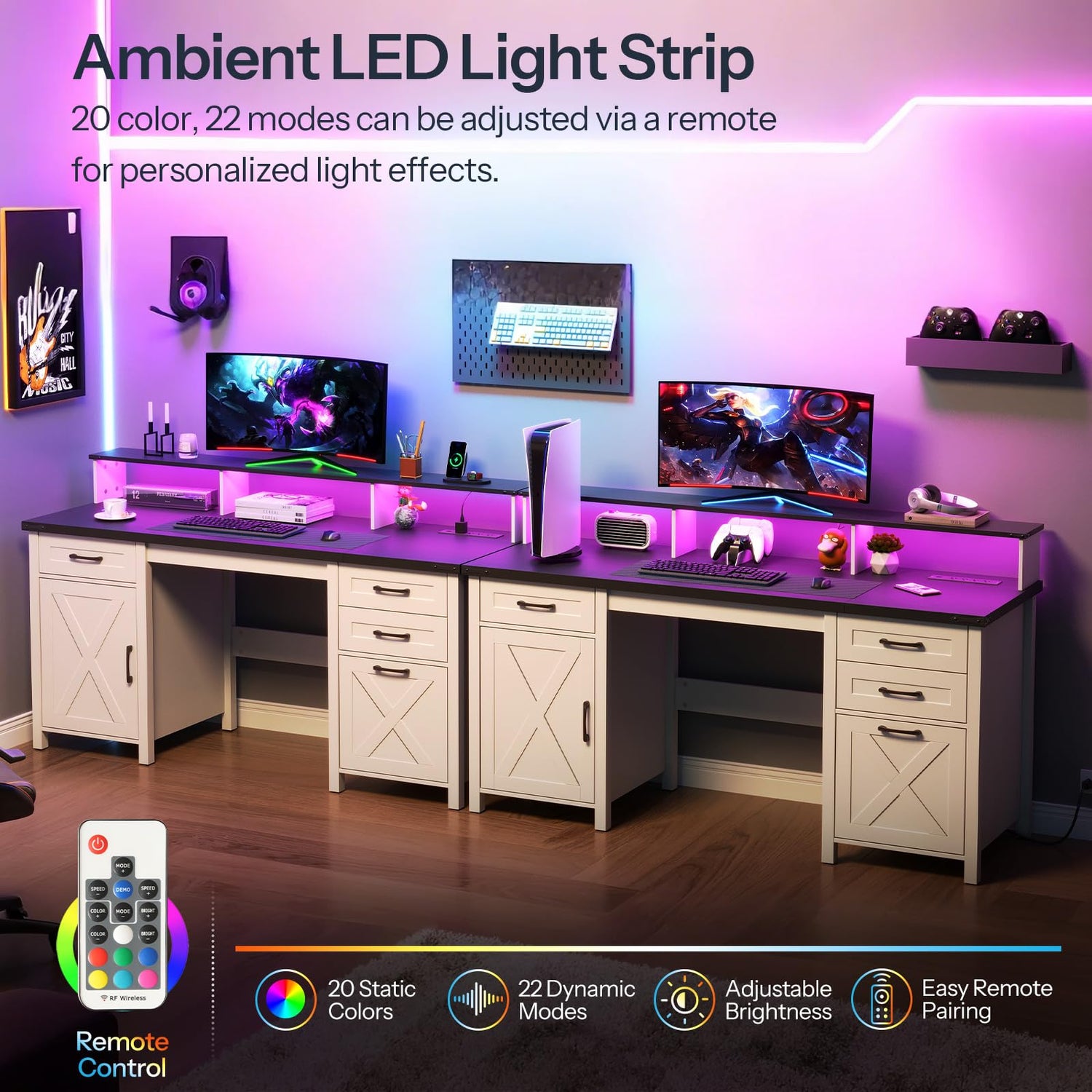 • Practical Home Office Desk: Equipped with a charging station and LED lights, this farmhouse desk is the perfect choice for setting up your computer, mobile phone and accessories, 4 AC outlets and 2 USB ports make charging a breeze. And the LED light strip adds a sense of atmosphere to your office environment, you can switch between 20 colors and 22 dynamic modes with the included remote control.