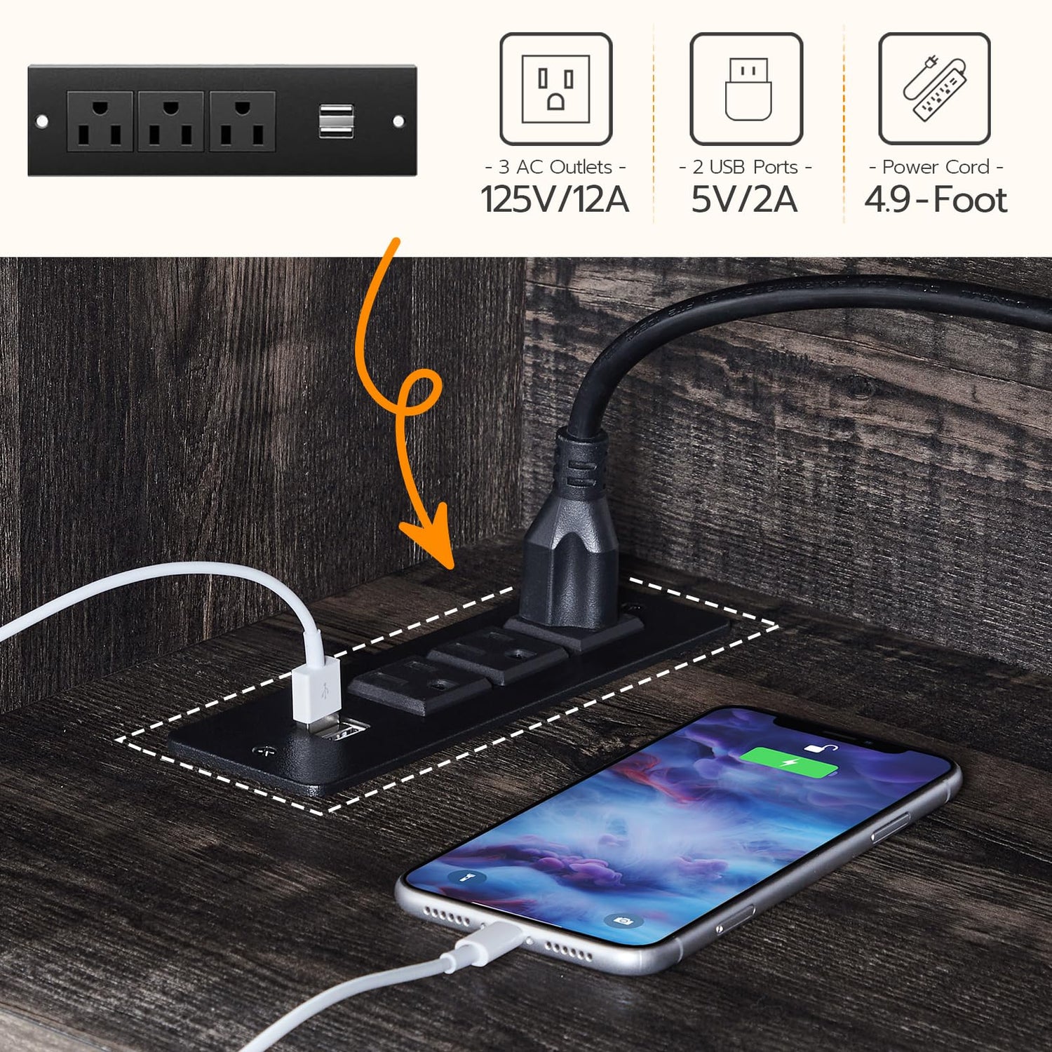 - Multi Functional TV Cabinet: The TV stand with led light and power outlet has a socket with a 150 cm power cord, 3 outlets and 2 USB ports to power multiple devices at the same time, such as TV, Wi-Fi, video player and more. Thoughtful cable holes keep cords neatly organized without clutter