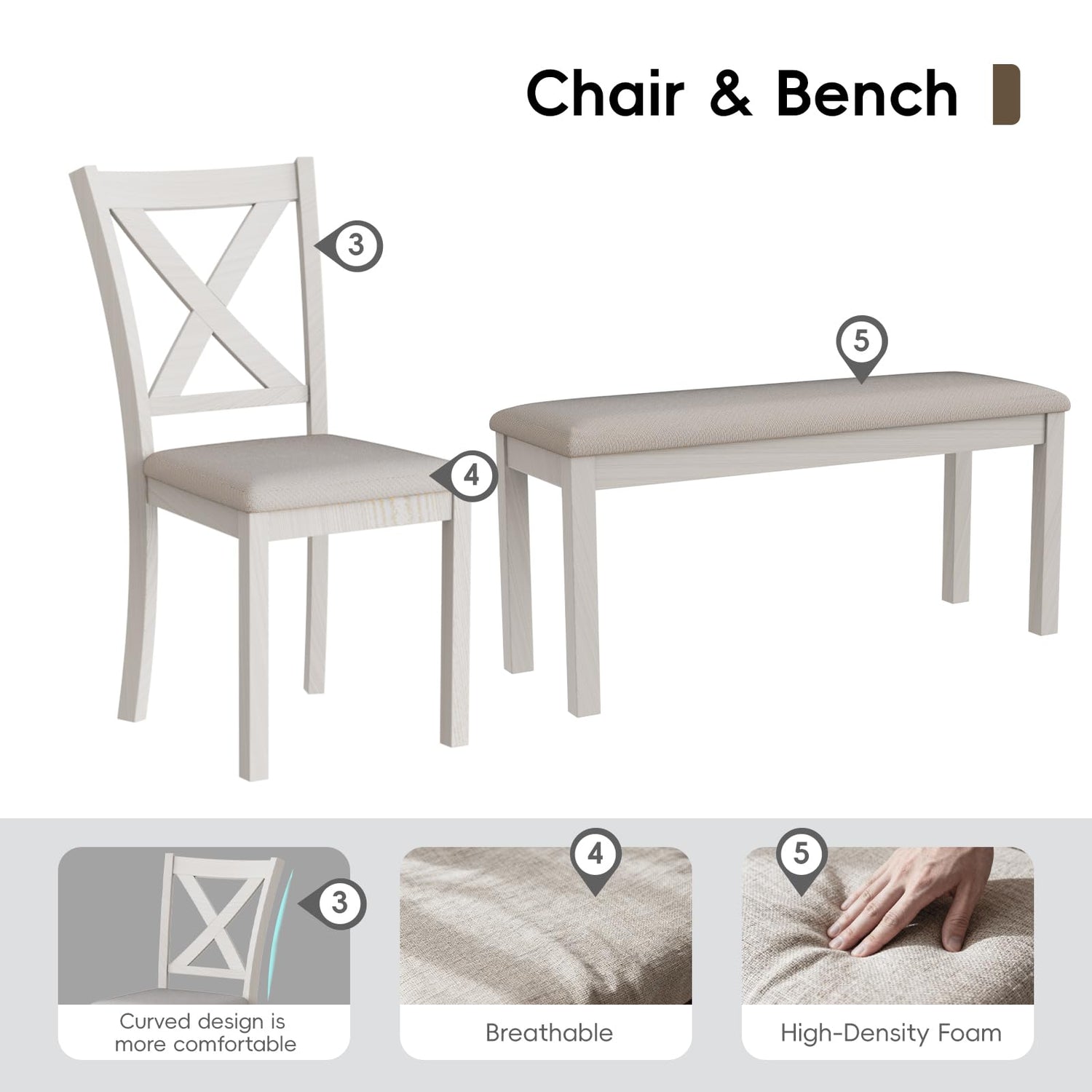 - COMFORTABLE SEATING OPTIONS: Includes four ergonomic chairs and a versatile bench with high-density cushions. The bench tucks under the table to save space, ideal for kitchen dining table set for 6.