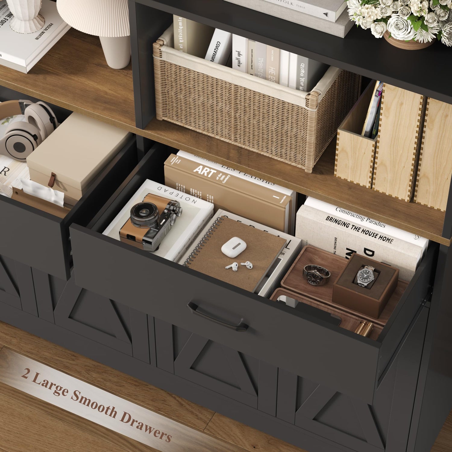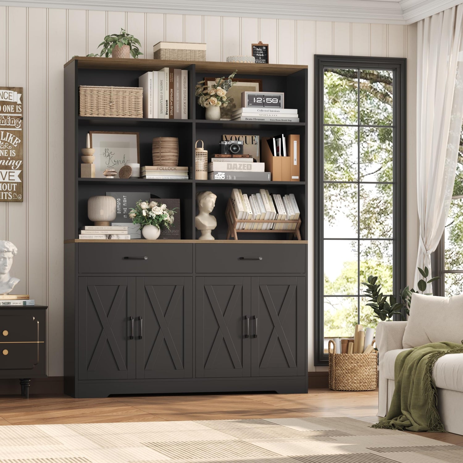 - Modern Farmhouse Charm: Featuring its beautiful wood finish, striking X-grain barn door, and two-tone design, this black bookshelf with storage blends perfectly rustic character with contemporary style. Its neutral palette and farmhouse-inspired details add warmth and elevate any living space