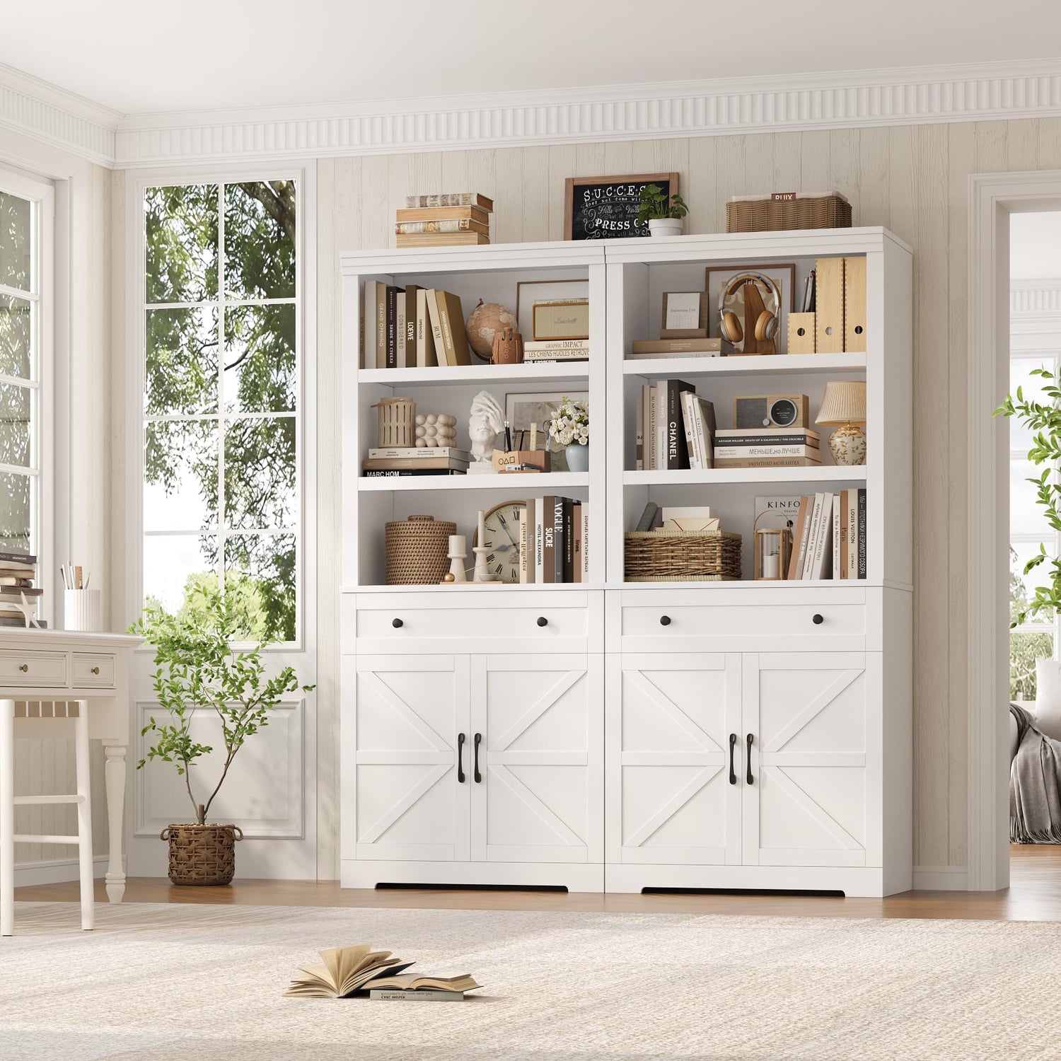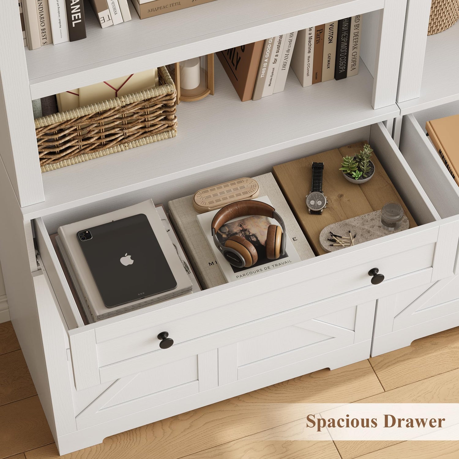 - Modern Farmhouse: The top of this 72" tall white bookshelf features protruding edges in an inverted trapezoidal tier design that adds visual details and vintage charm, complementing the barn door's rustic texture for timeless farmhouse appeal to fit seamlessly in various decor styles