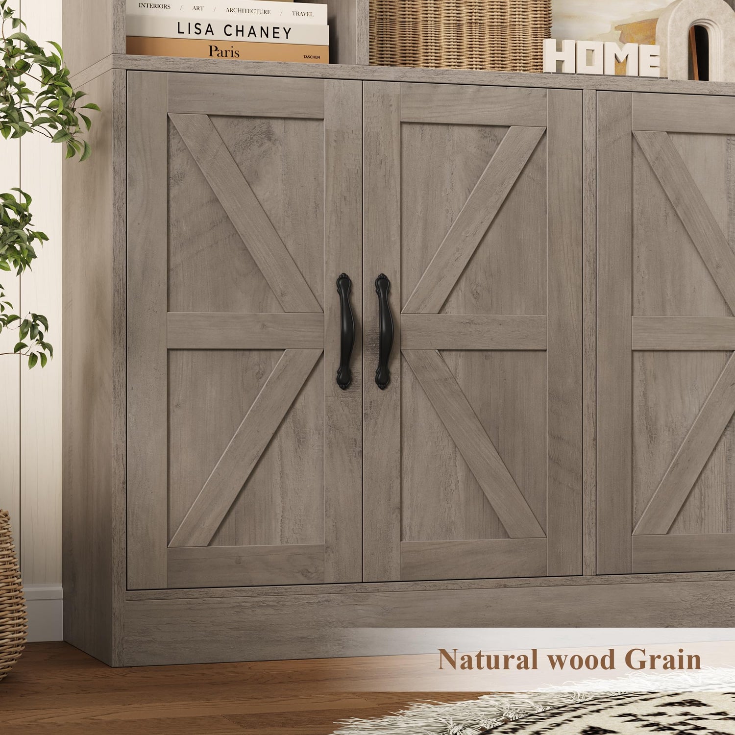 HOSTACK 75” Tall Book Shelf and Bookcase, Bookshelf with Storage Cabinet, 47” Wide Bookcase with 4 Doors, Standing Display Shelves, Modern Farmhouse Book Case for Living Room, Home Office, Ash Grey