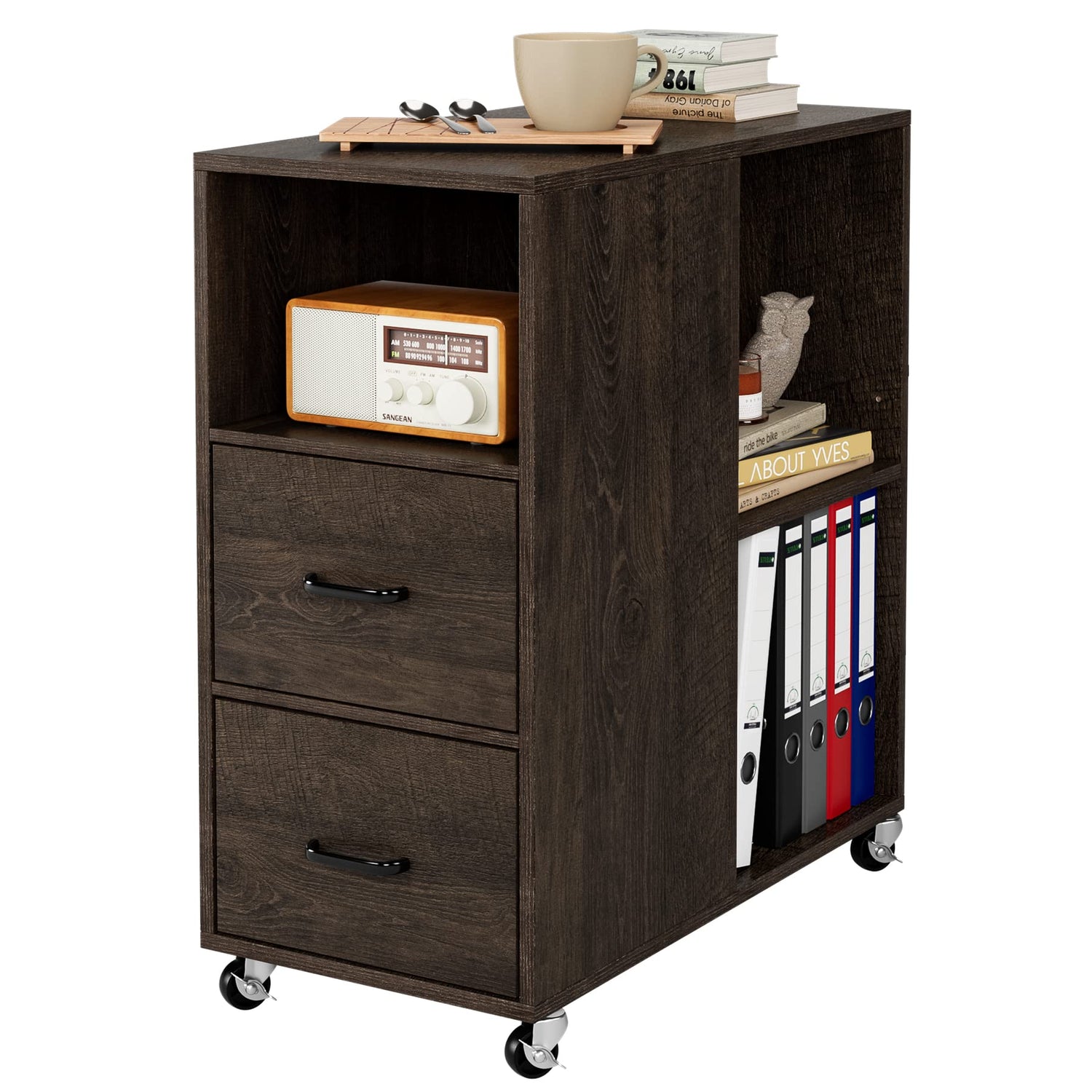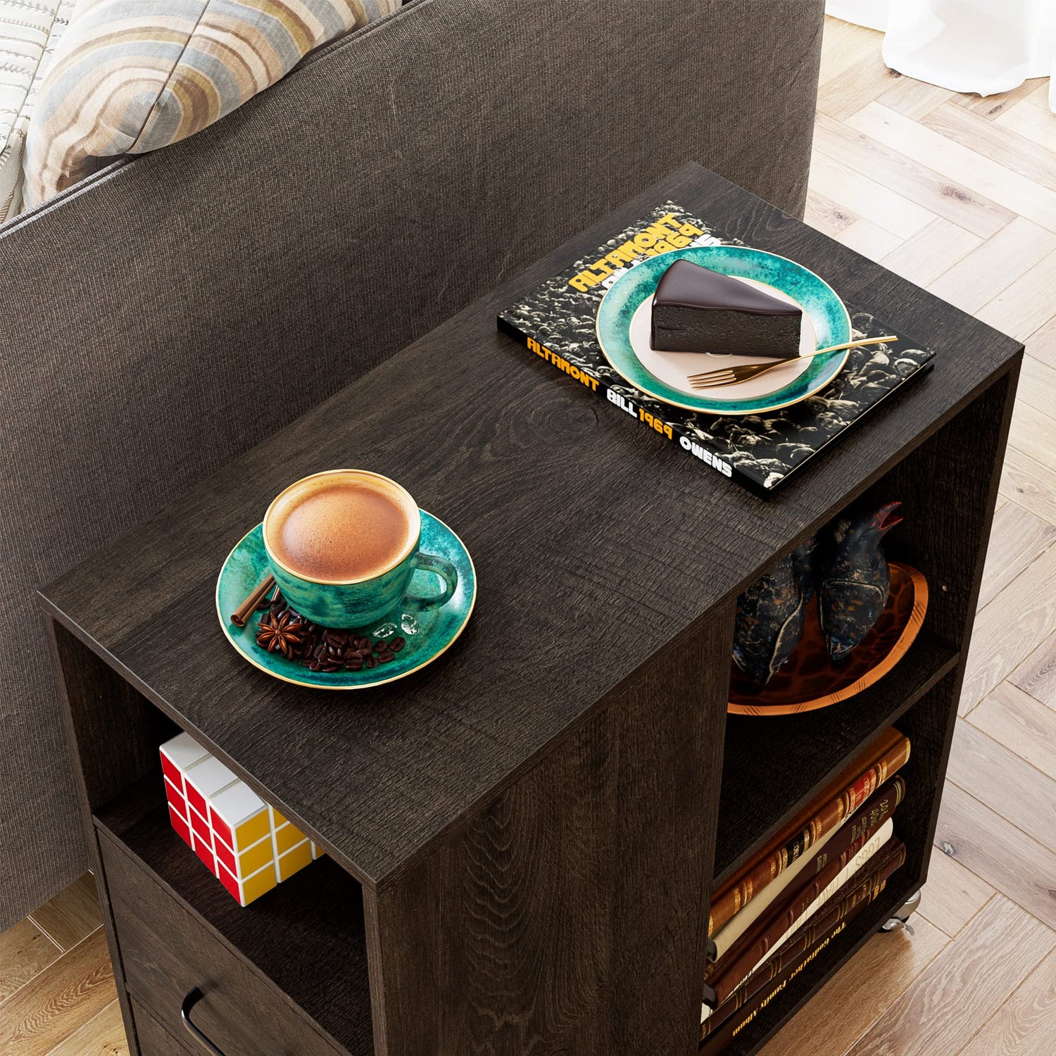 HOSTACK End Side Table, Narrow Nightstand with Storage Drawers and Adjustable Shelf, Rolling Bedside Table for Bedroom, Living Room, Home Office, Dark Brown