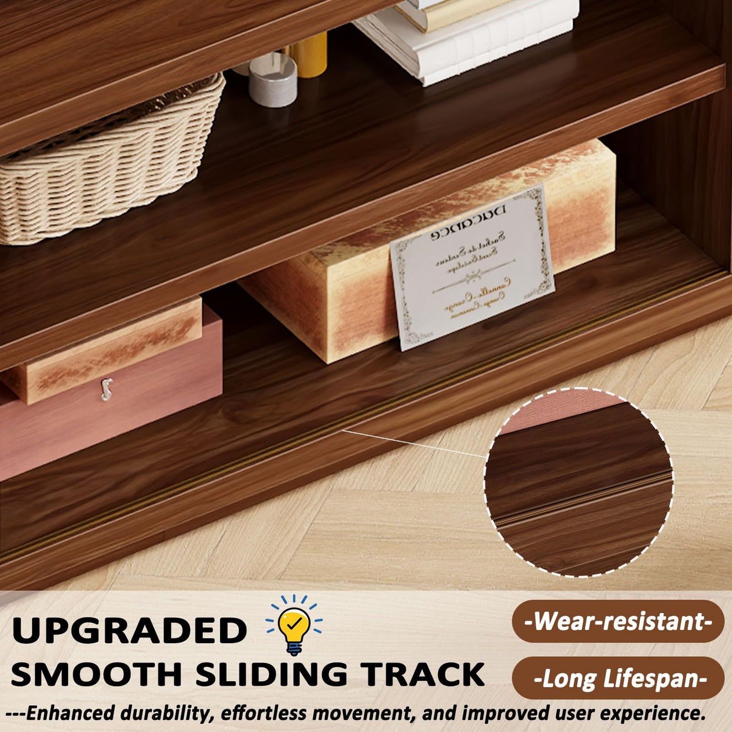 - 【Elegant Sliding Door】 The Wooden Media Console features frosted sliding doors that add elegance while protecting privacy and hiding clutter. The sliding design keeps items free to take and ensures easy access to media devices and accessories.