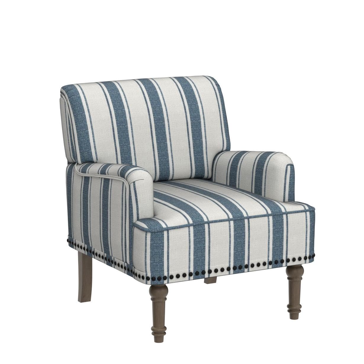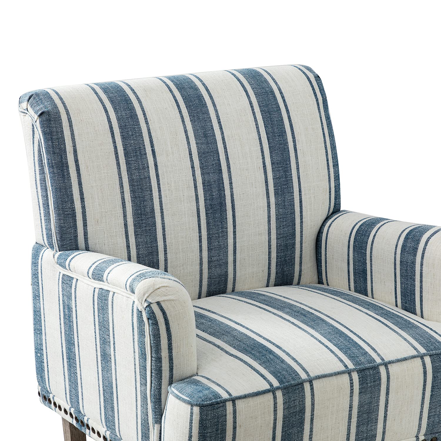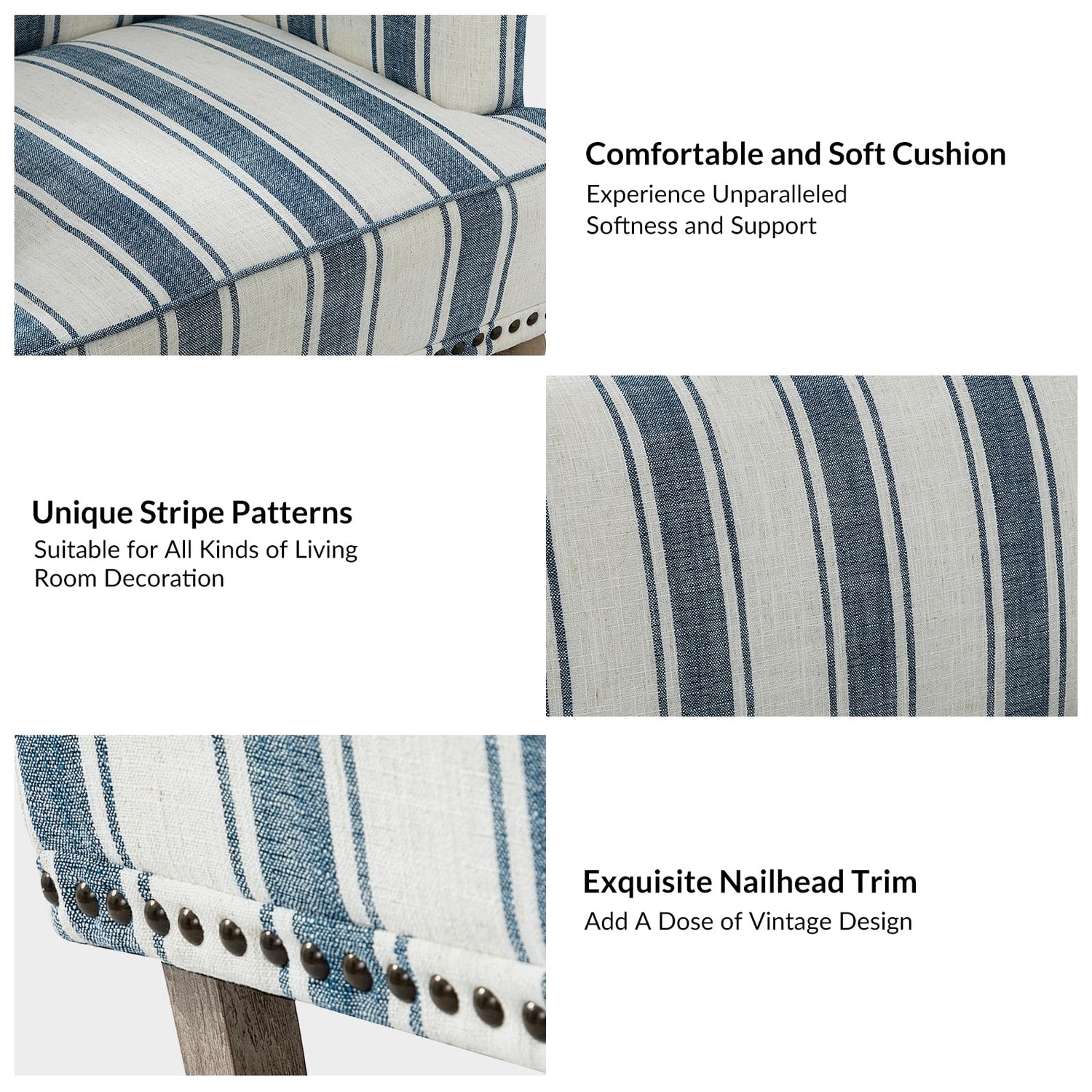 HULALA HOME Modern Armchair with Wooden Legs & Nailhead Trim, Comfy Upholstered Accent Chair for Living Room Bedroom Office(Stripe Pattern, Navy)