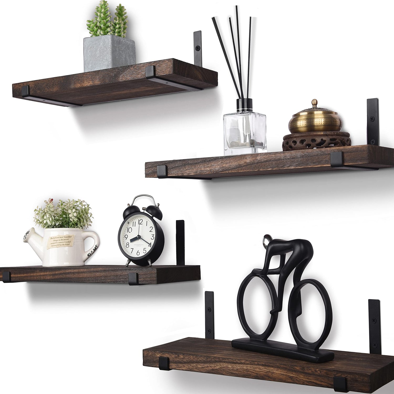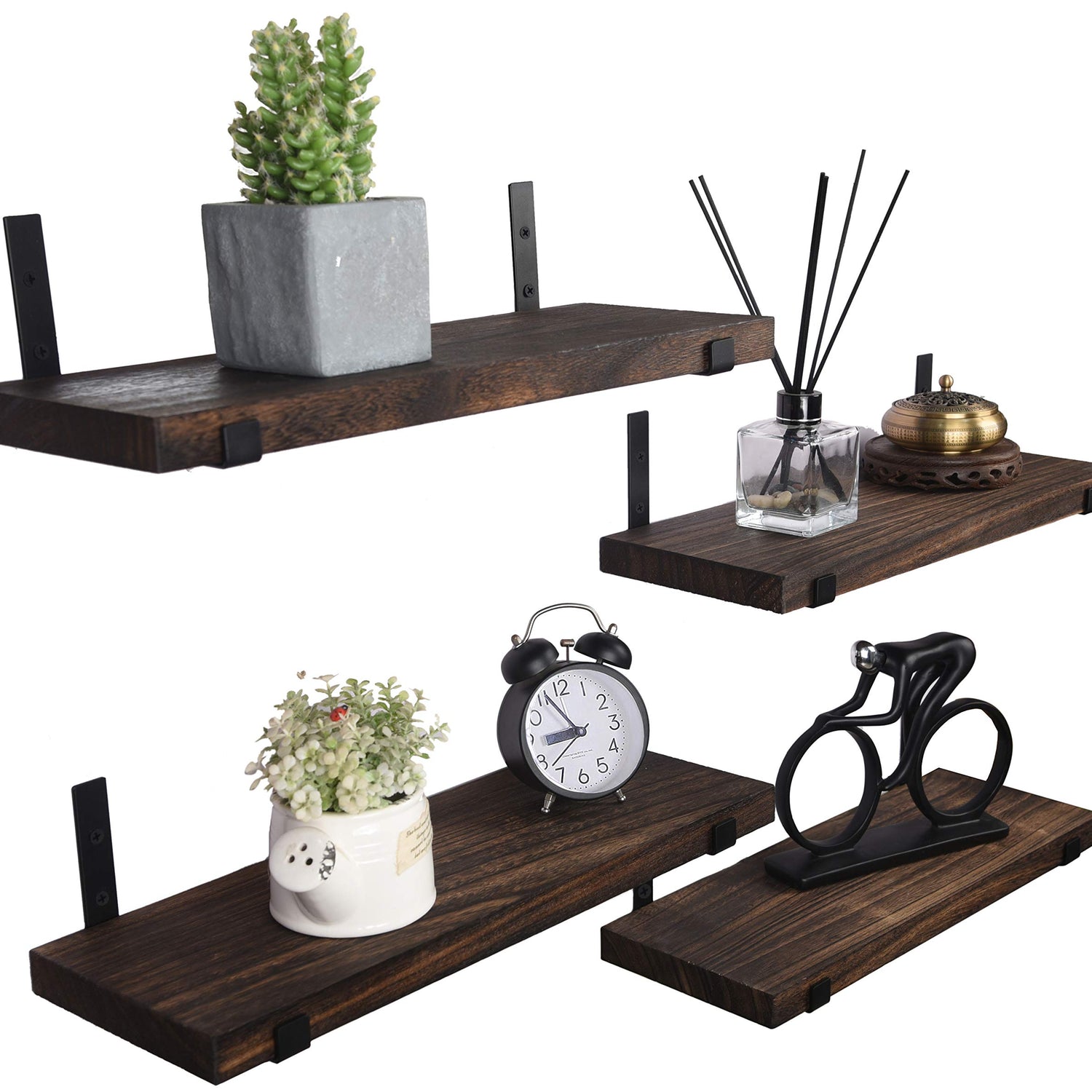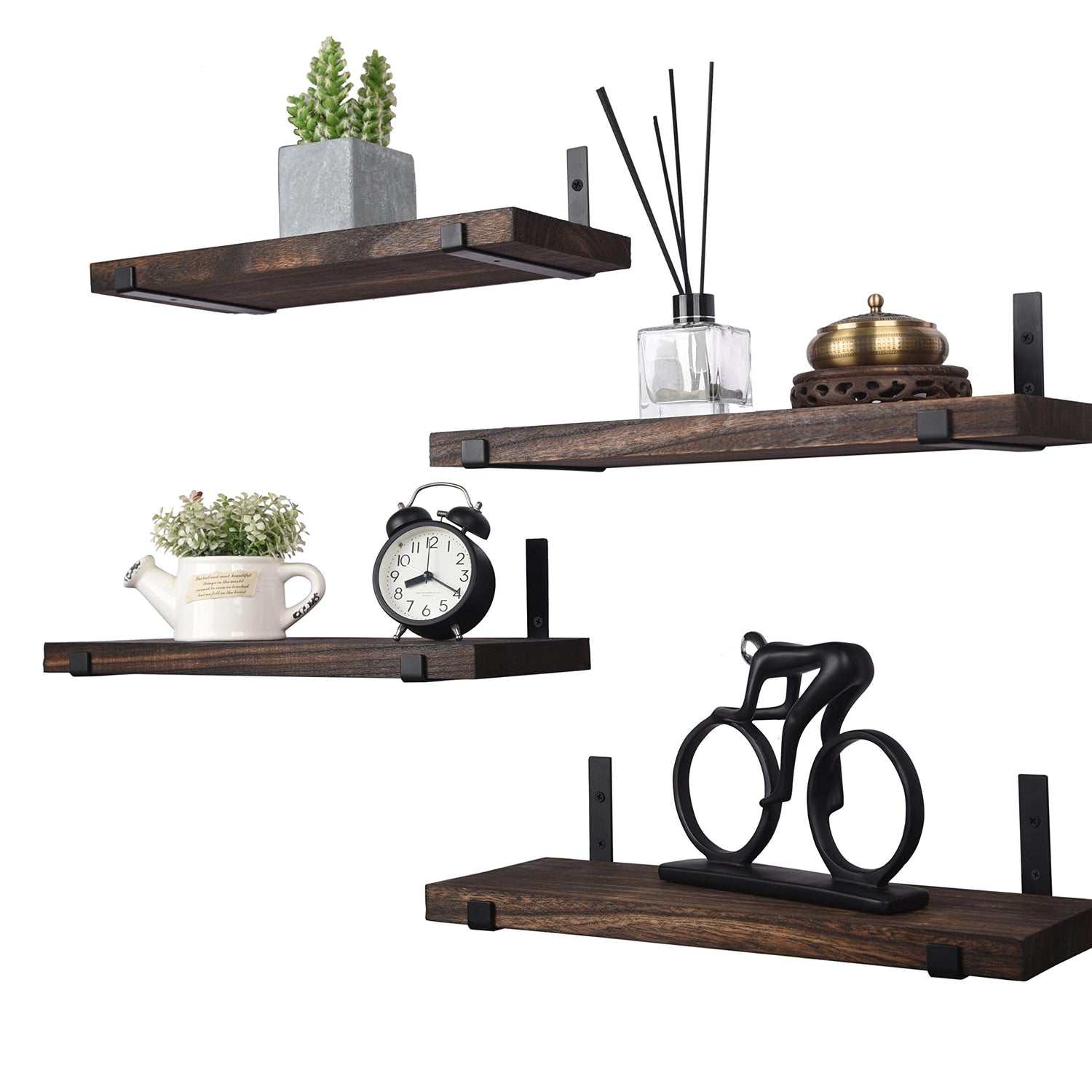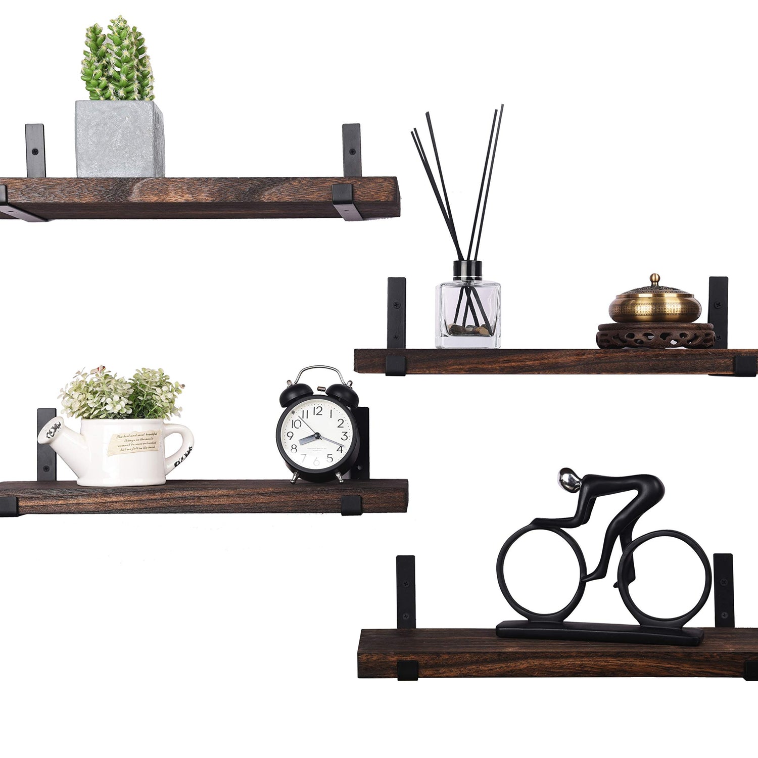 HXSWY Rustic Wood Floating Shelves for Wall Farmhouse Wooden Wall Shelf for Bathroom Kitchen Bedroom Living Room Set of 4 Dark Brown