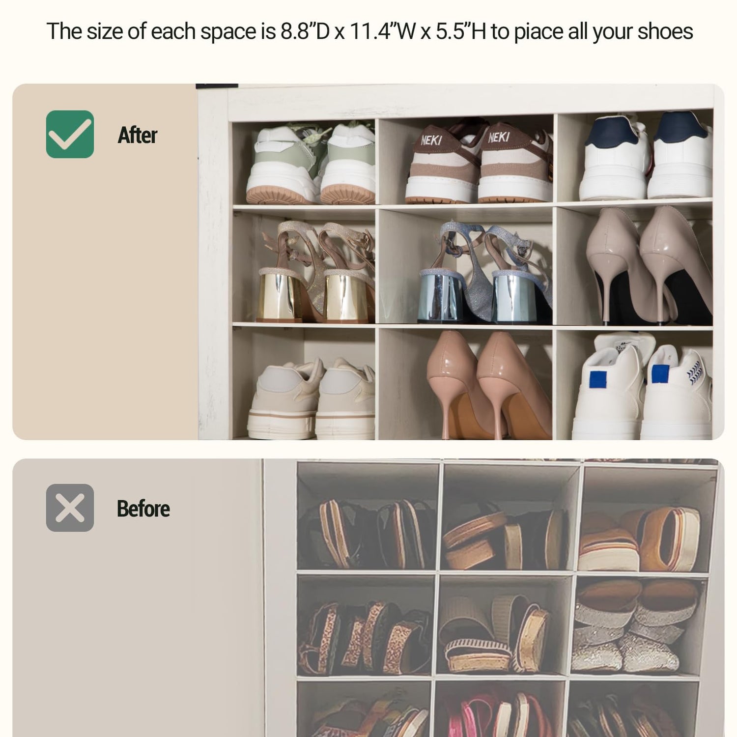 - Stylish Design: This free-standing shoe cabinet is designed in a farmhouse style, with a rice-shaped door shape and black handle embellishment, which will perfectly complement your home life.