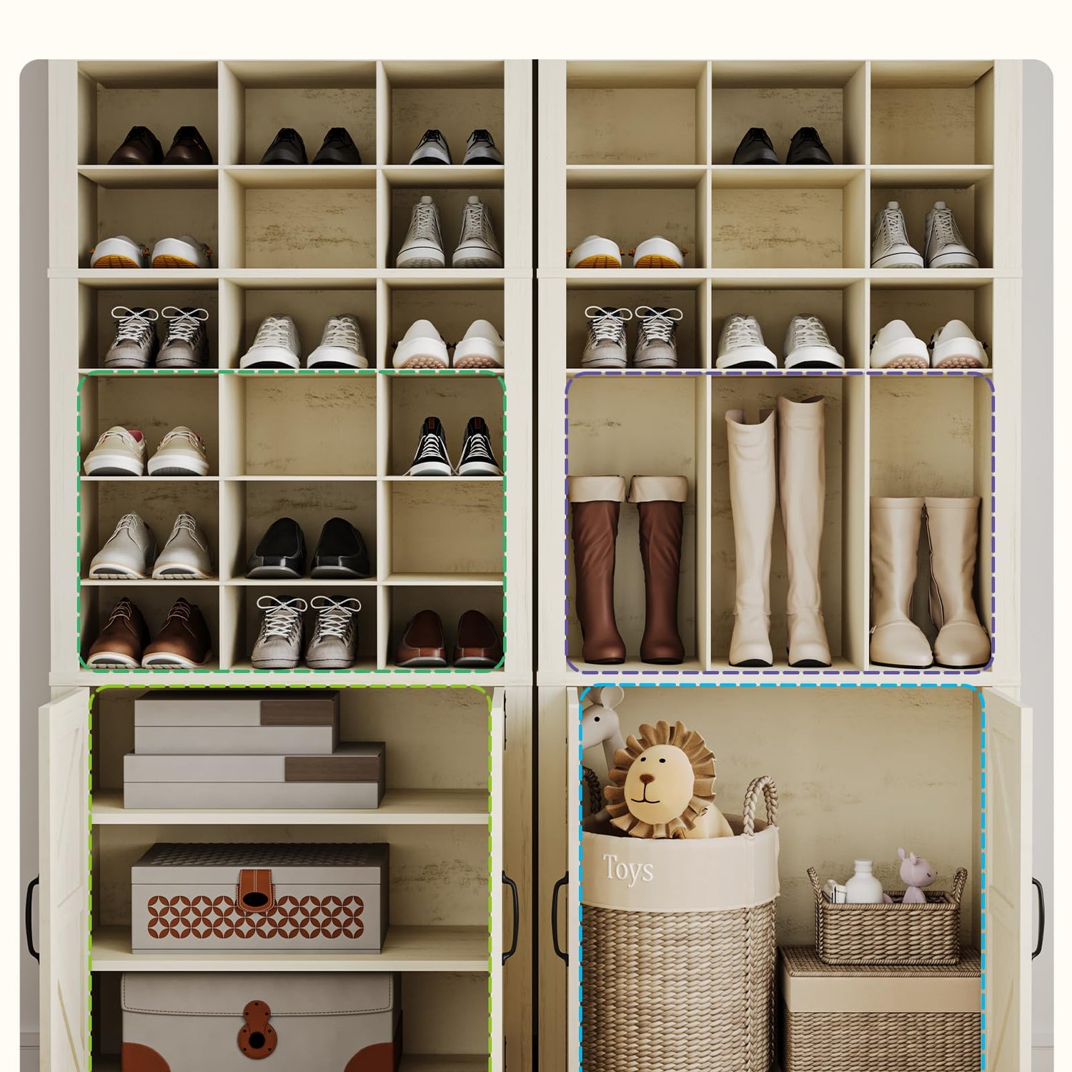 - 8.8" Cell widening storage: 30 small compartments 8.8" wide are enough to store different types of shoes, and the removable bottom shelves 7.9" high on each floor below are perfect for storing boots or baskets, always keeping them clean and tidy.
