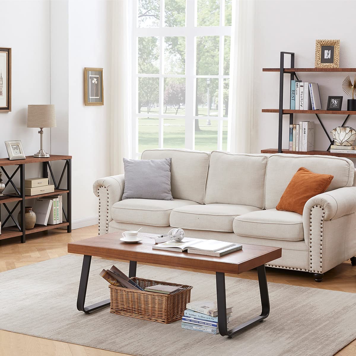 - Support Up to 300 LBS: Metal U-shaped legs that tilt outwards at an angle make the natural wood coffee table more stable and less shaky, meanwhile thickened cedar wood finish can make the rustic brown tea table hold up to 300 lbs.
