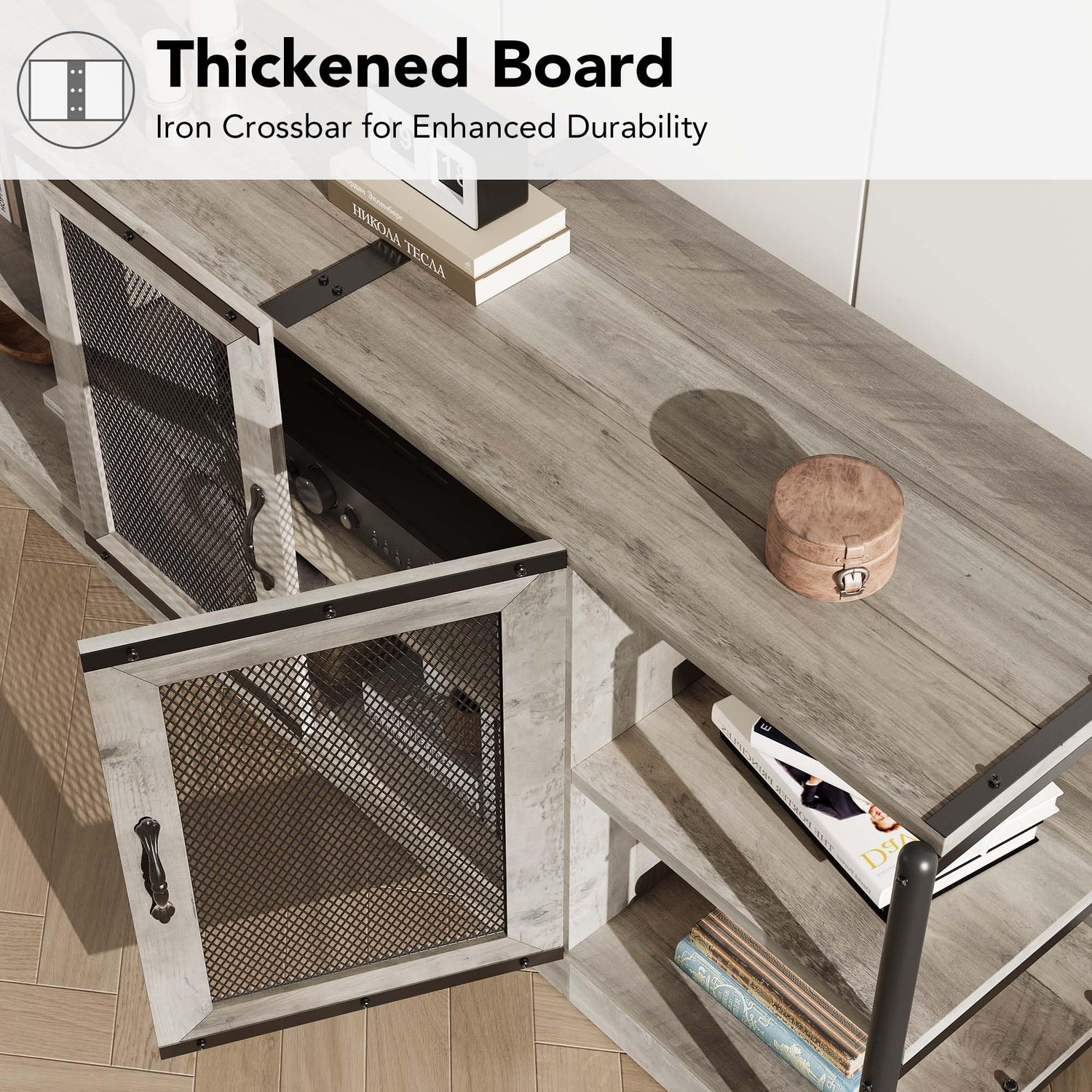 IDEALHOUSE Farmhouse TV Stand for 65/75 Inch TVs, Entertainment Center with Storage Cabinet, Industrial Media Console Table, Furniture for Living Room, Grey