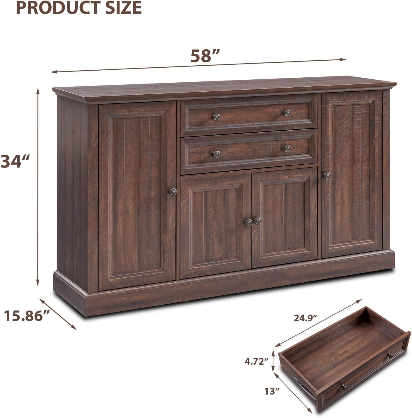 Details: Farmhouse Sideboard Buffet Cabinet with Storage, 58'' Large Coffee Bar Stroage Cabinet with 2 Drawers and 4 Doors, Wood Rustic Accent Cabinet for Dinning Room, Kitchen, Hallway, and Living Room