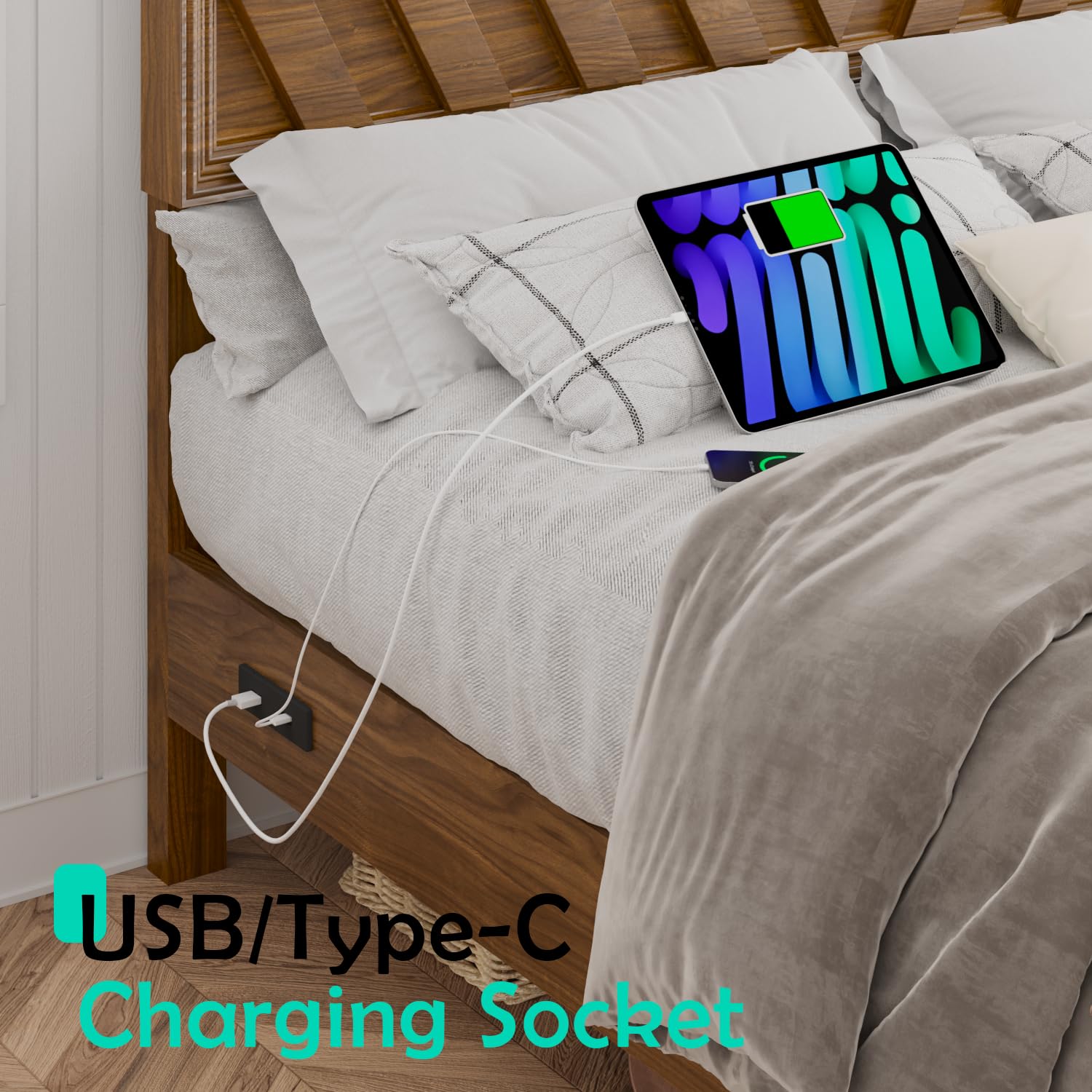 - Integrated Charging Station: Bed with headboard with USB and Type-C charging ports solve battery issues effortlessly