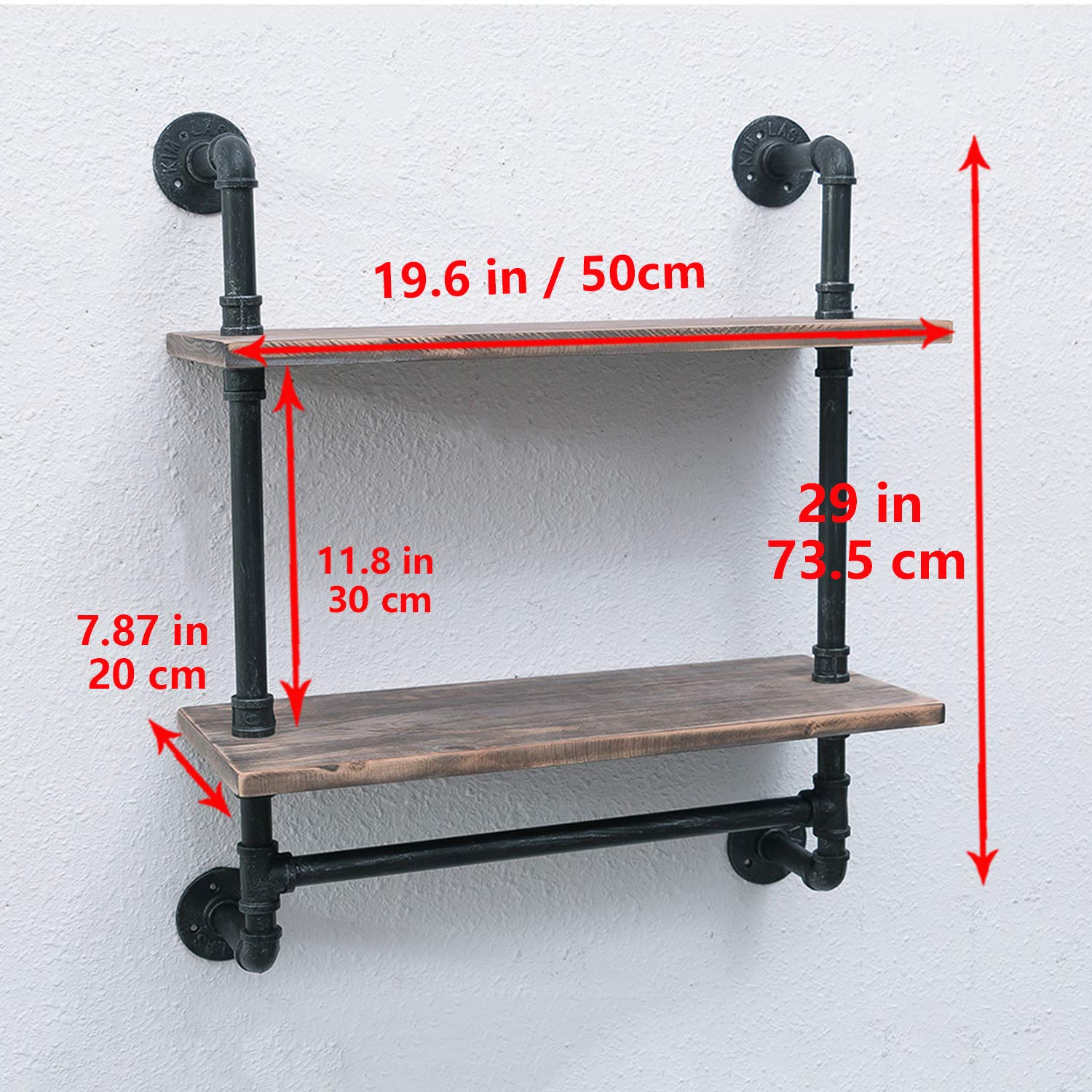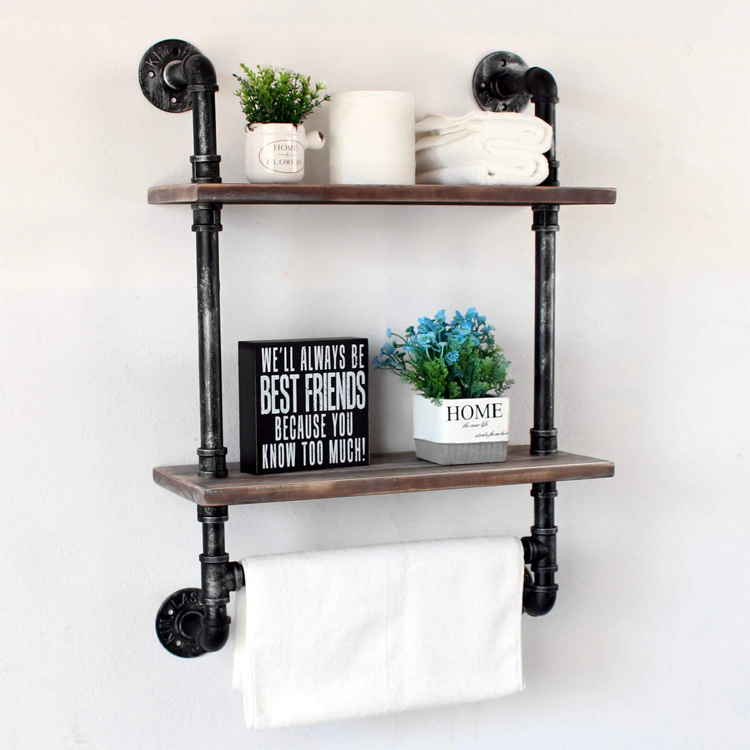 Details: MBQQ Industrial Towel Rack With Towel Bar,19.6" Rustic Bathroom Shelves Wall Mounted,2 Tiered Farmhouse Pipe Wall Shelf,Metal&Wood Floating Shelves,Home Decor Towel Holder