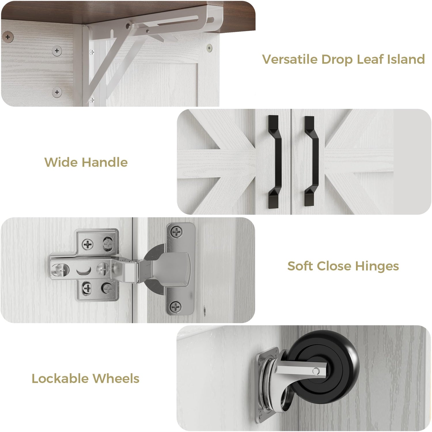 - Kitchen Island with Drop Leaf: This rolling kitchen island features a practical folding design that maximizes kitchen space. Expand it to increase the area for meal preparation and dining, while saving valuable space when folded