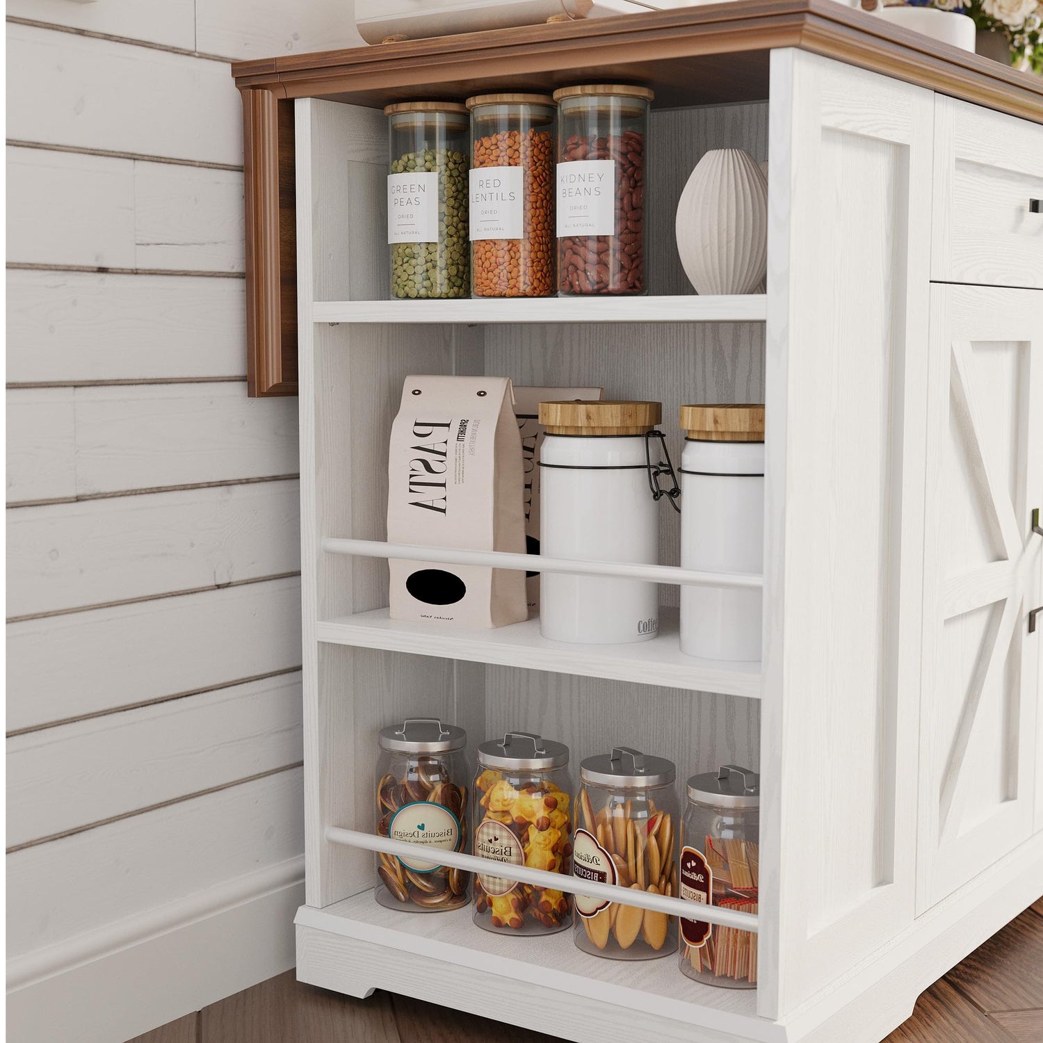 - Kitchen Island with Trash Can Storage: This multifunctional kitchen island cart includes a side storage space for a trash can, and its closed cabinet door design effectively prevents odors from escaping, keeping your kitchen clean and organized