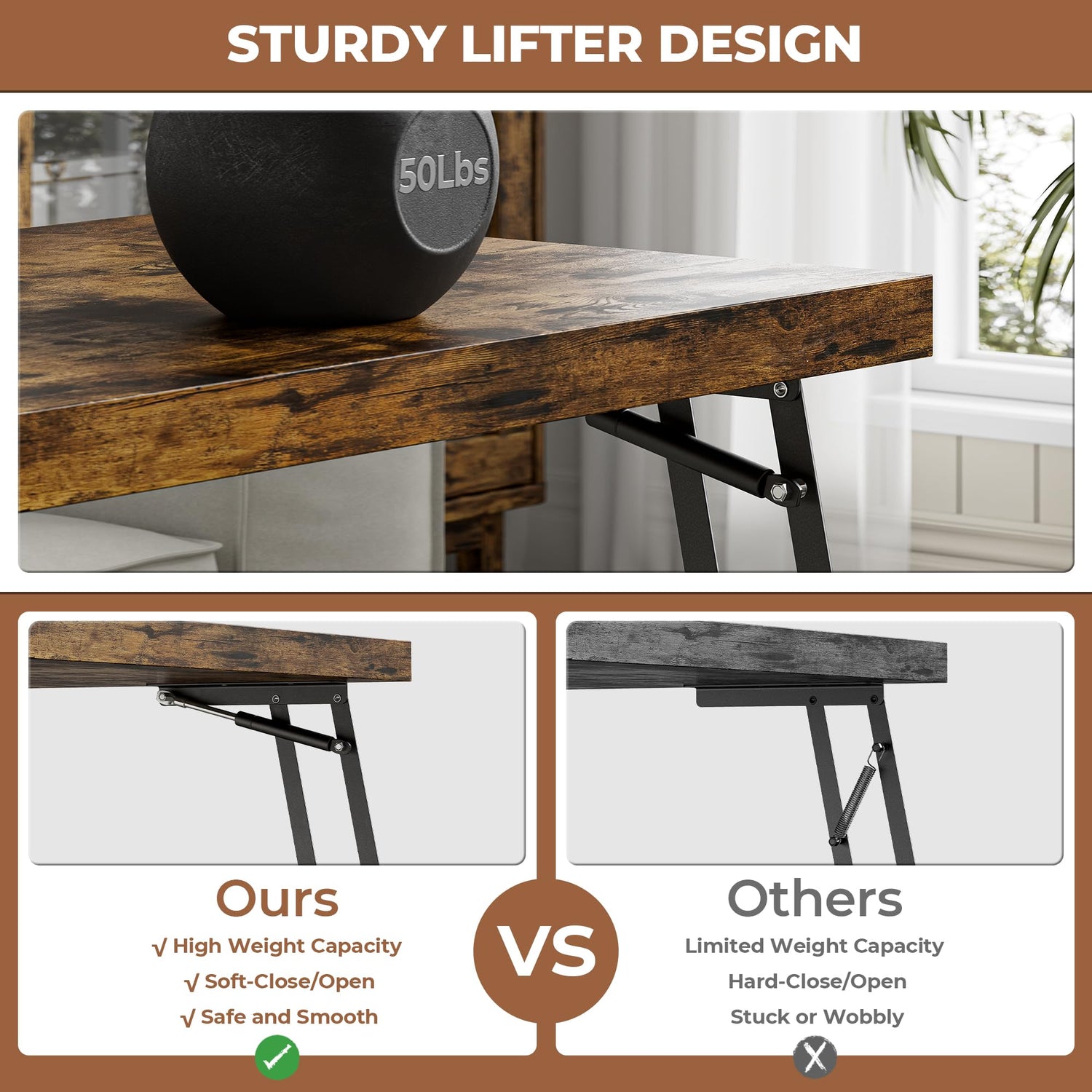 - Lift Top Coffee Table: This coffee table is equipped with high quality lifting mechanism with pneumatic support, which is smooth and safe. You can easily lift the table top to turn it into a cozy computer desk, allowing you to sit comfortably on the sofa to work at home, enjoy food, etc