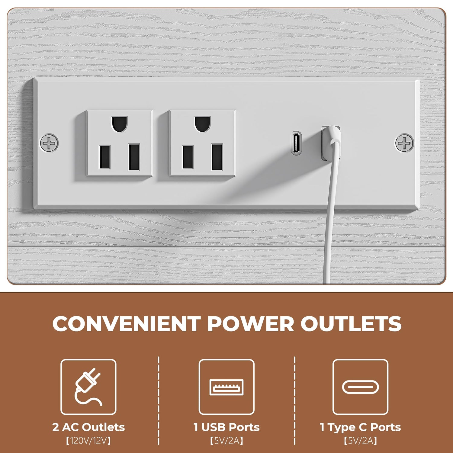 - Convenient Charging: The side of the farmhouse coffee table is equipped with a power outlet with 2 AC outlets, 1 USB port, 1 Type-C port, which is convenient for charging your cell phone or laptop, and can also be used to power small appliances such as a coffee maker