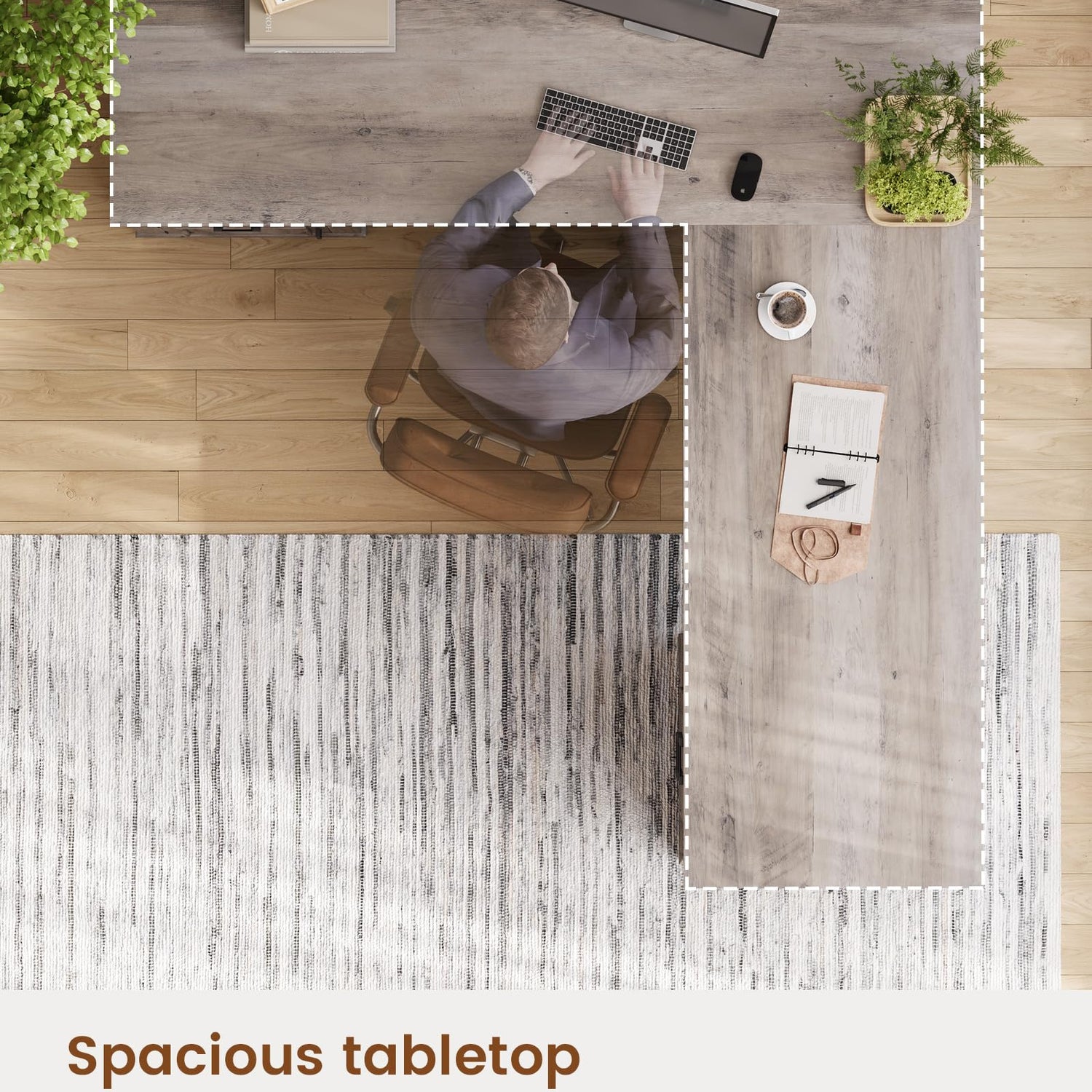 - 【Ideal Space】This executive L shaped desk has a spacious desktop. The desktop size is 69"L*21.6"W and 59"L*21.6"W. This spacious executive desk provides ample space for files, computers, printers. This sleek farmhouse l shaped desk is the perfect addition to any home office desk setup.