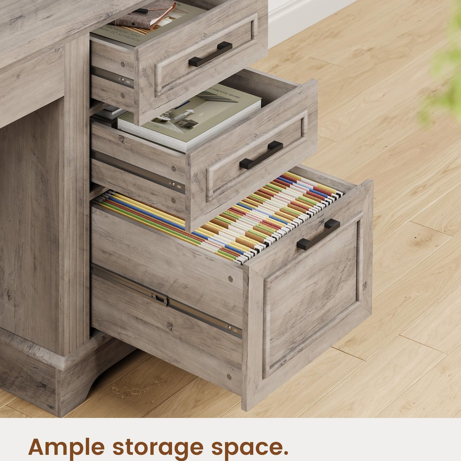 - 【Ample Storage Space】It features 4 drawers and a storage cabinet which can accommodate a large number of files, books, and other office essentials, file cabinet can hold letter/A4 files. Each drawer is equipped with a high-quality sliding rail that can withstand tens of thousands of uses, the smooth slide allows for effortless opening and closing.