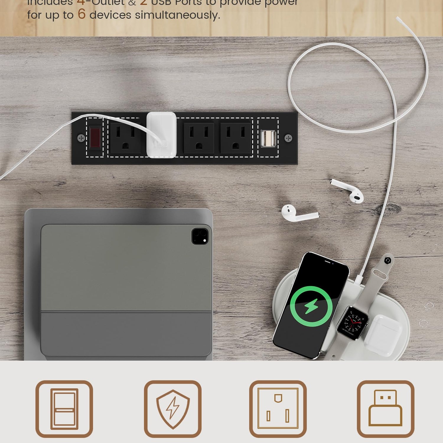- 【User Friendly】The farmhouse executive desk includes a built-in power strip with 4 outlets & 2 USB Ports provides convenience for charging your gaming gear, tablet、printer or phone.Don't worry about not having enough power sockets. Also includes an on-off switch, thanks to the on-off switch, one-button power off to ensure safe electricity use, which strengthens security.
