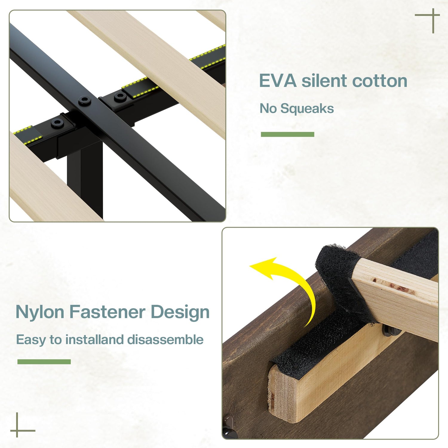 • 【Noise-Free Design with EVA Padding】No more sleepless nights caused by creaky beds. EVA foam strips on each slat absorb movement and reduce noise for a stable, restful experience—perfect for light sleepers