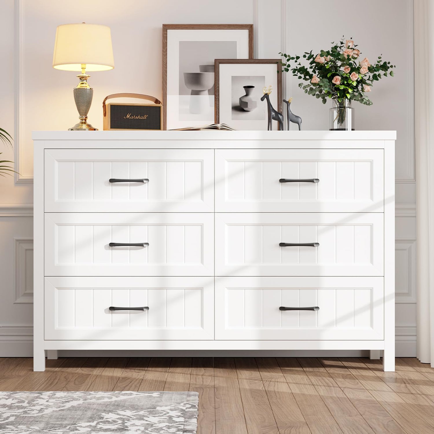 Jocoevol 6 Drawer Dresser for Bedroom, Farmhouse Dresser with Deep Drawers, Large White Dresser Wooden Double Dresser Chest of Drawers for Living Room, Hallway, Entryway (White, 6 Drawer)