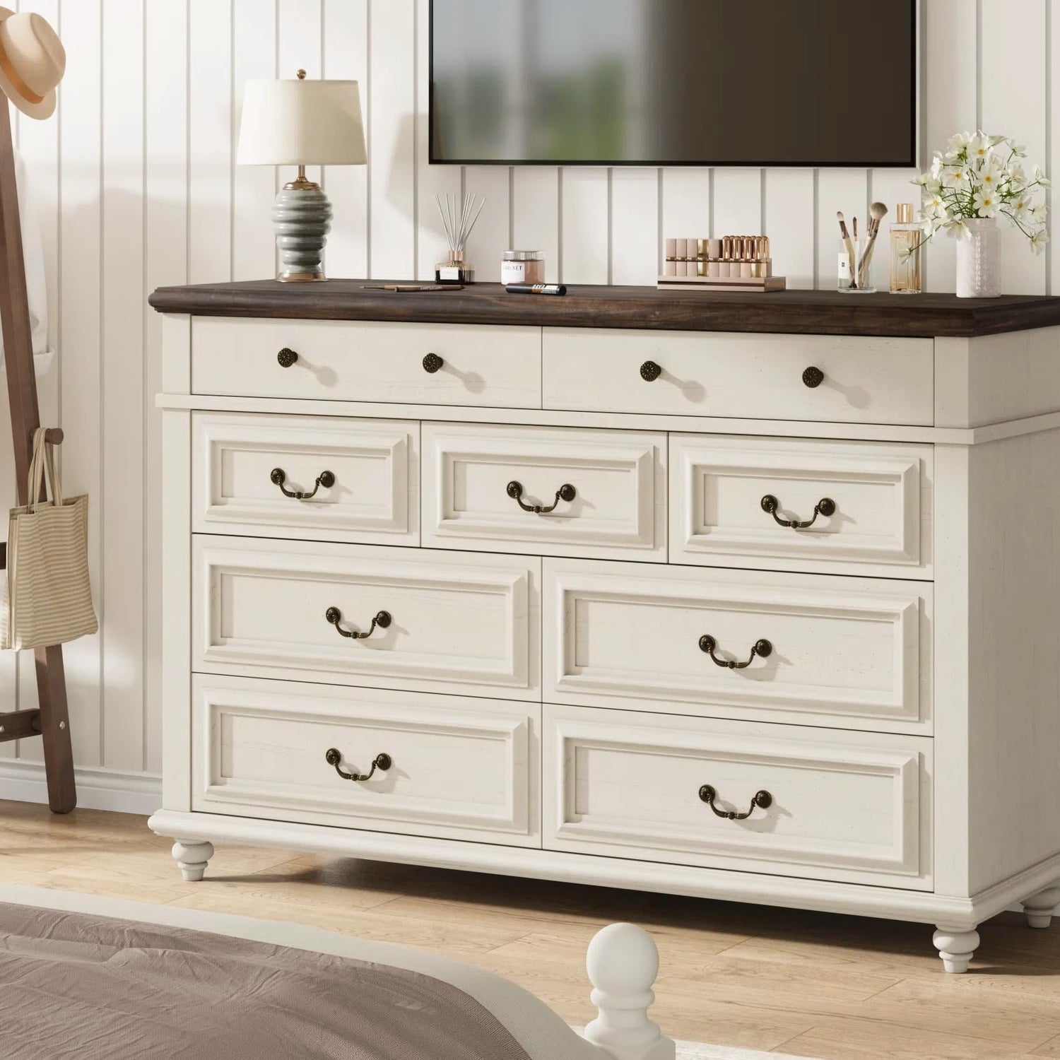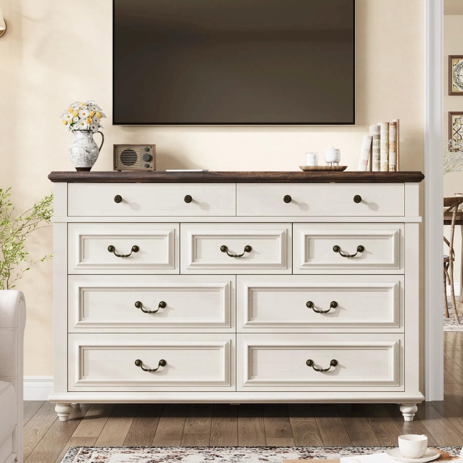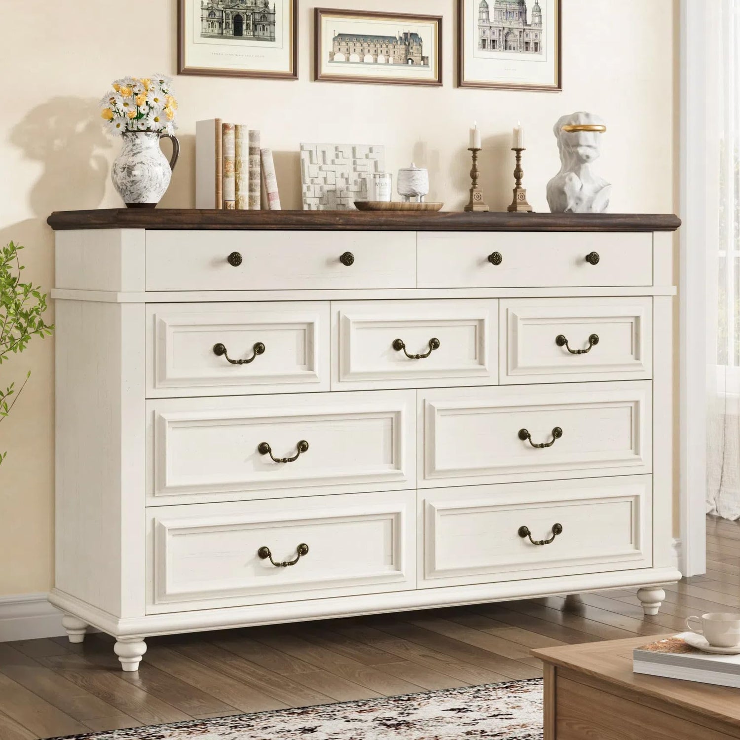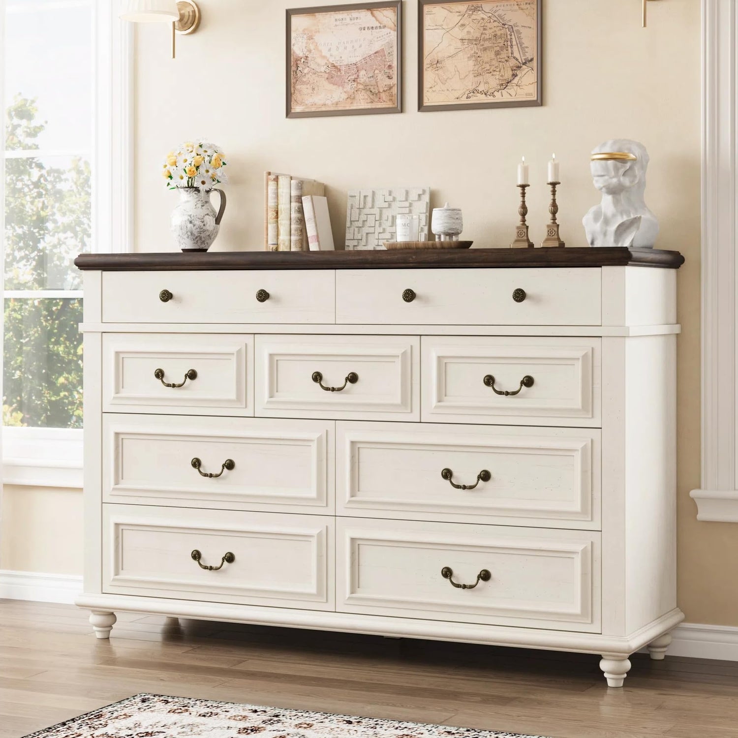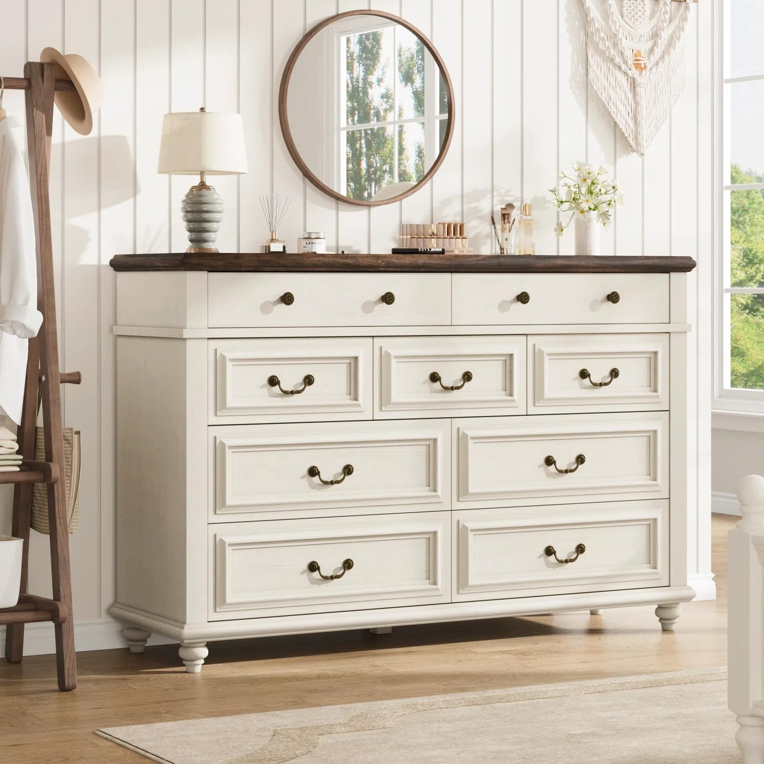 Jocoevol Cream Farmhouse Dresser for Bedroom, 9 Drawer Chest of Drawers, Tall Dressers for Bedroom Storage, Dresser for Closet, Dressers & Chests of Drawers (Cream, 53.5" Wide)