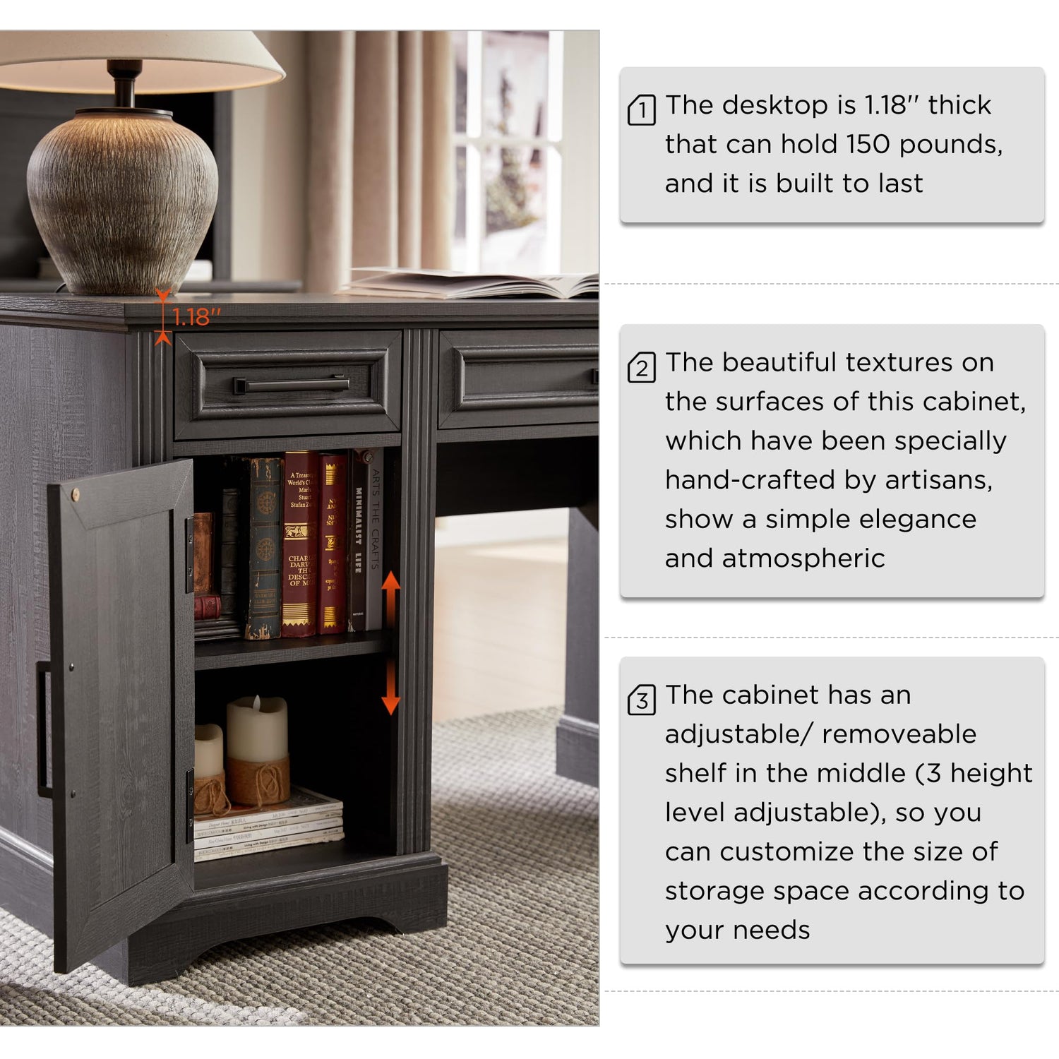 JXQTLINGMU Farmhouse 58" Executive Desk, Computer Desk with Drawers and Storage Cabinet, Workstation for Home Office, Black