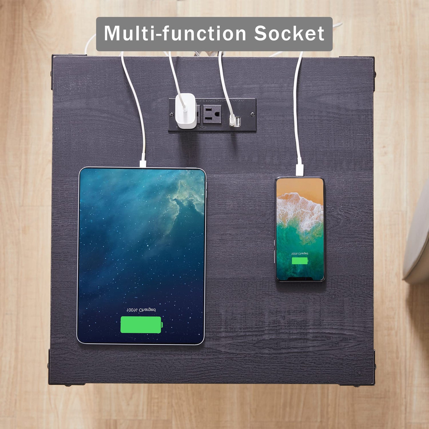 - USB OUTLETS FOR CHARGING: Our end table with a built-in charging station allows you to easily charge your devices. This can be especially useful for keeping your phone, tablet, or e-reader charged and ready to use during the night.
