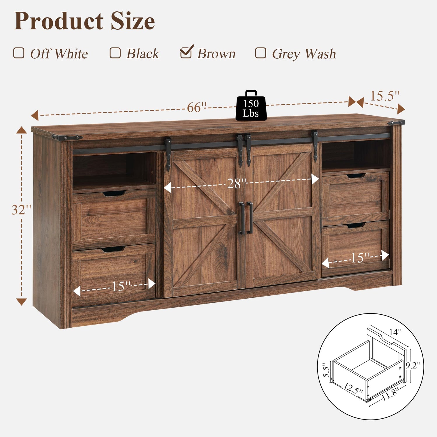 - Elevate Your Living Space: Experience the perfect blend of rustic charm and modern elegance with our 66" Elegant Rustic Fireplace TV Stand. Measuring 66"W x 15.5"D x 32"H, it accommodates TVs up to 75-80 inches, becoming the focal point of your living room. Adorned with side cabinets featuring Sliding barn doors and drawers, it showcases your style. Stay organized and enjoy the timeless allure of the weathered finish that complements any home décor.