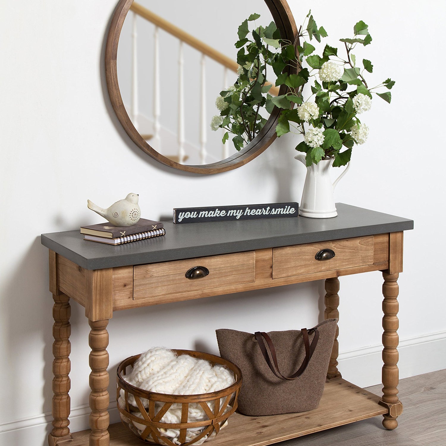 Kate and Laurel Rutledge Farmhouse Chic Two Drawer Console Table, Rustic Wood Base and Concrete Gray Top