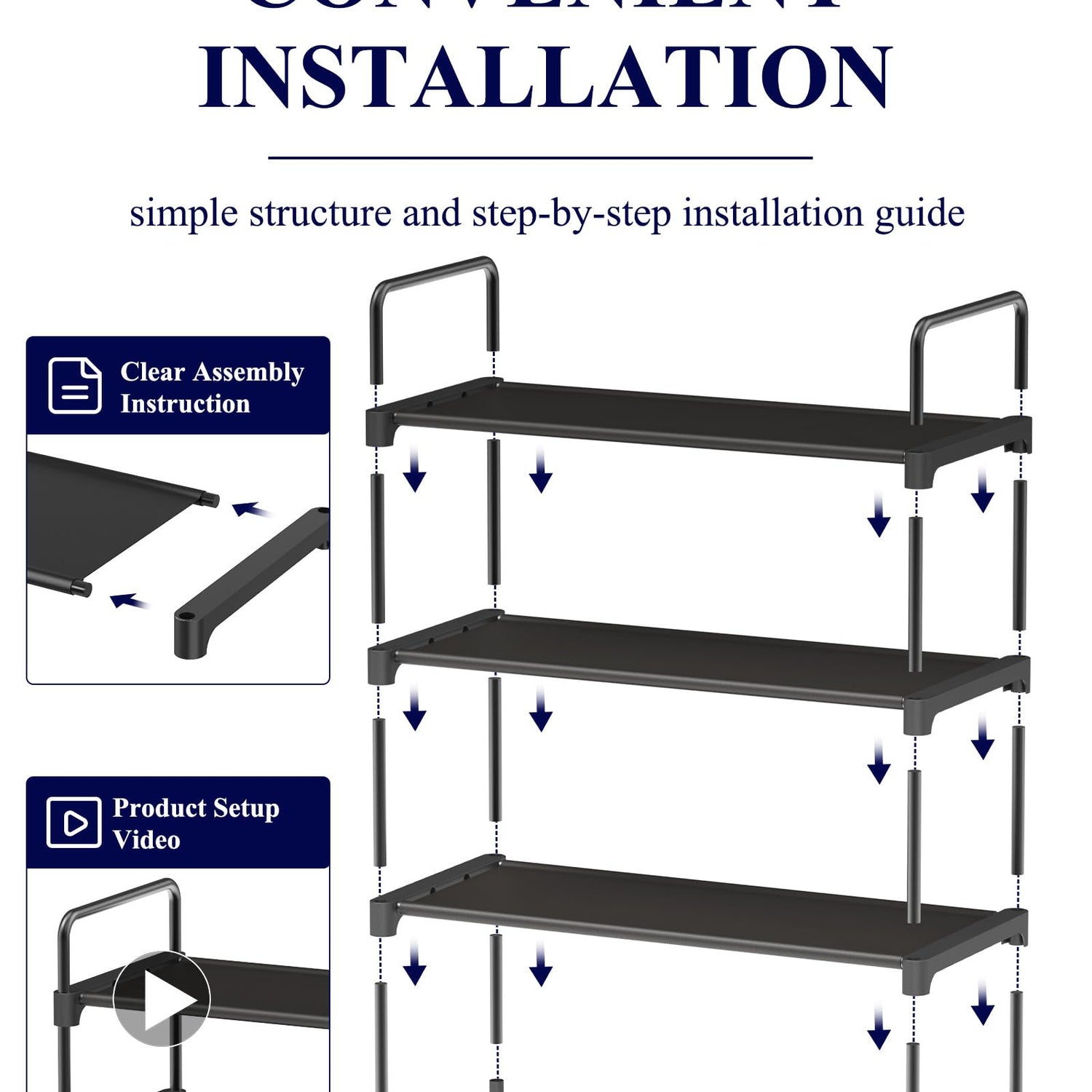- TOOL-FREE ASSEMBLY: With its simple structure, this shoe rack is designed for a tool-free setup. It comes with a detailed instruction manual and an easy-to-follow installation video, allowing you to complete it quickly and independently. Enjoy a hassle-free setup and start using this shoe organizer for entryway in no time!
