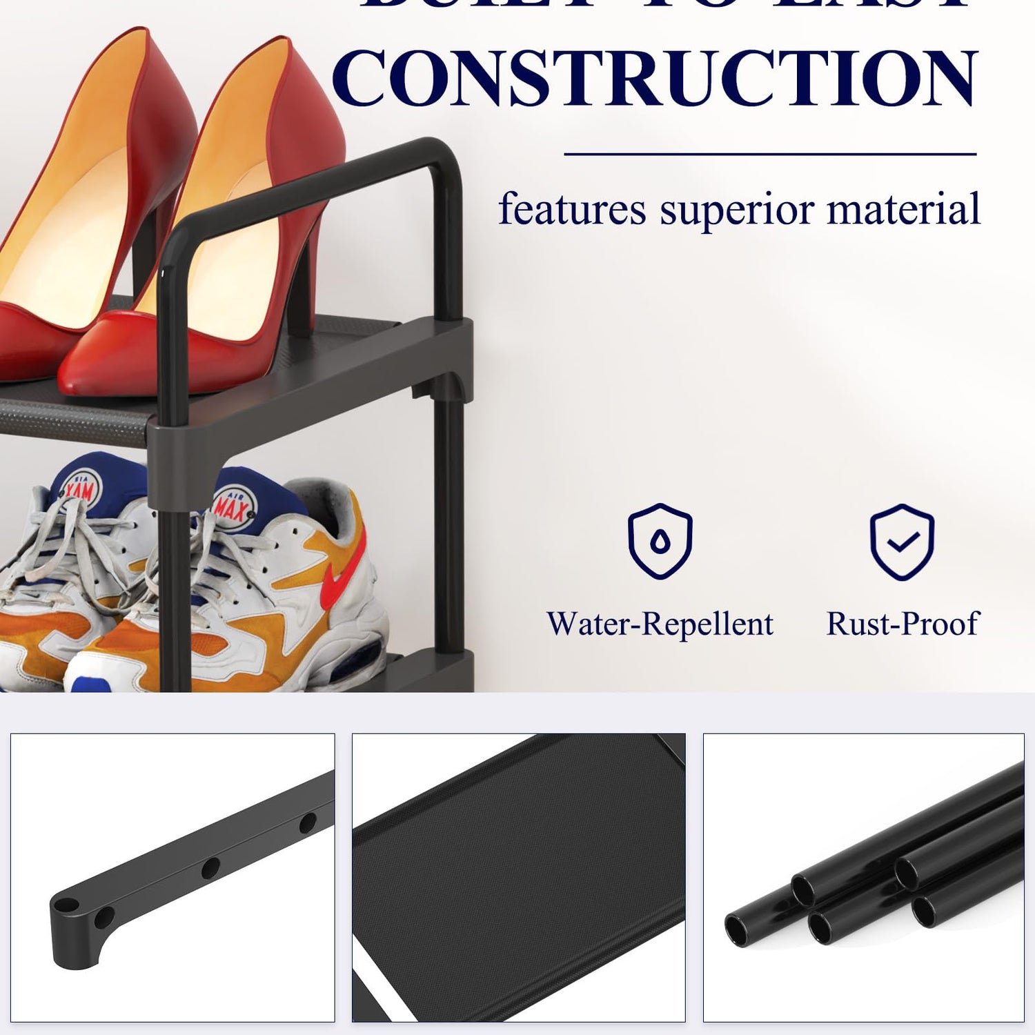 - LONG-LASTING MATERIAL: Featuring thickened metal tubes and robust plastic connectors, this shoe rack ensures dependable support for shoe storage. The sturdy and tear-resistant non-woven fabric shelves securely hold all your shoes. Its rust-proof, water-resistant design allows for easy cleaning with a damp cloth.