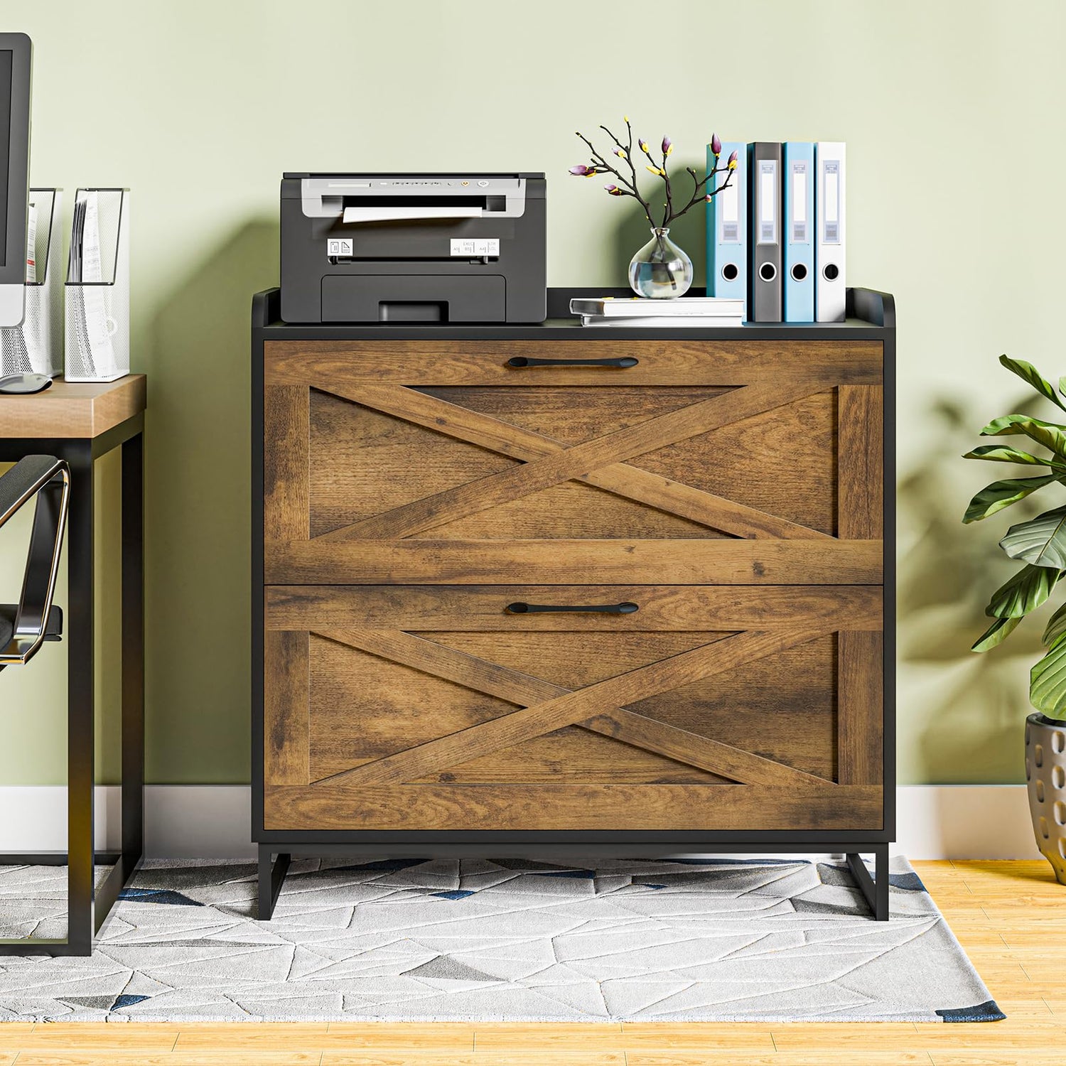 - 📠【LARGE STORAGE SPACE VERSATILE USE】The spacious lateral file cabinet 2 drawers can be used to hang files to keep your documents organized. It can also be used as a vanity or large nightstand for home supplies. And 31.5"W x 15.75"D large desktop is perfect for printers, scanners, etc. Basically it can meet the storage and placement needs of most items.