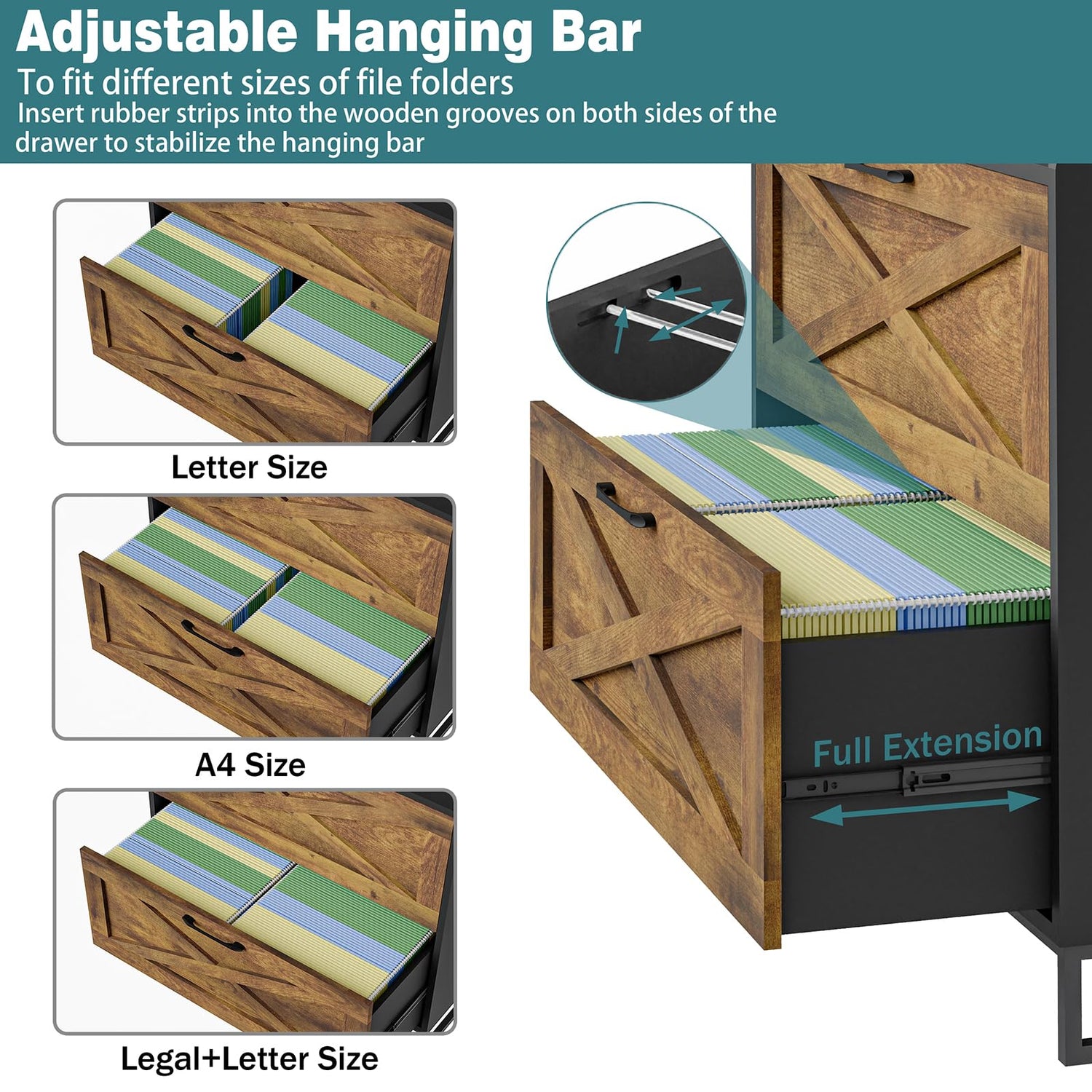 - 🛠️【EASY ASSEMBLY & EXCELLENT CUSTOMER SERVICE】Thank you for your support and trust in our File Cabinets. Our Rustic Brown and Black File Cabinets with clear step-by-step Instructions and numbered pieces Hardware Pack for easy assembly. ☎️Vabches provides trusted service, Please feel free to contact Vabches service team.
