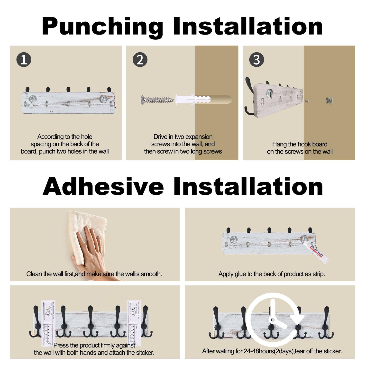 • [Size and Loadbearing]: Size: 17.3"(440mm)(L) x 3.9"(100mm)(W) x 0.7"(18mm)(Thick). The distance between the hooks is 13" (330mm). Weight capacity: The Loadbearing of Drill hole installation is 45 pounds, and the Loadbearing of glue installation without drill and screw is 30 pounds.